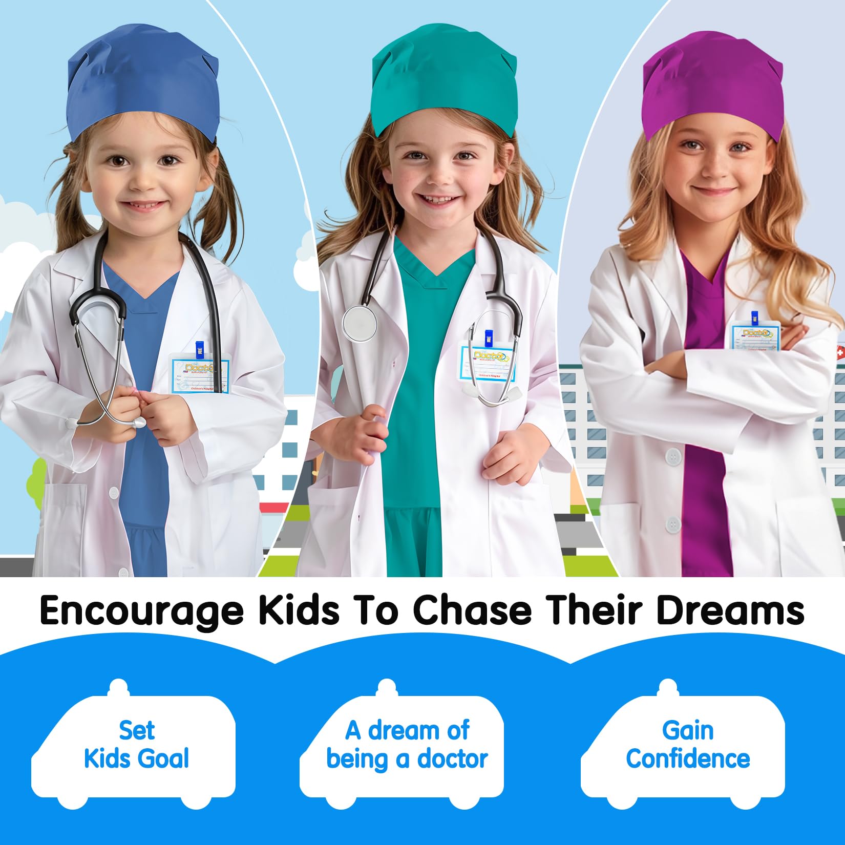 COTATERO Doctor Scrubs Costume for Kids With Stethoscope Lab Coat Career Day Costume Doctor Dress Up For Boys Girls 3-12