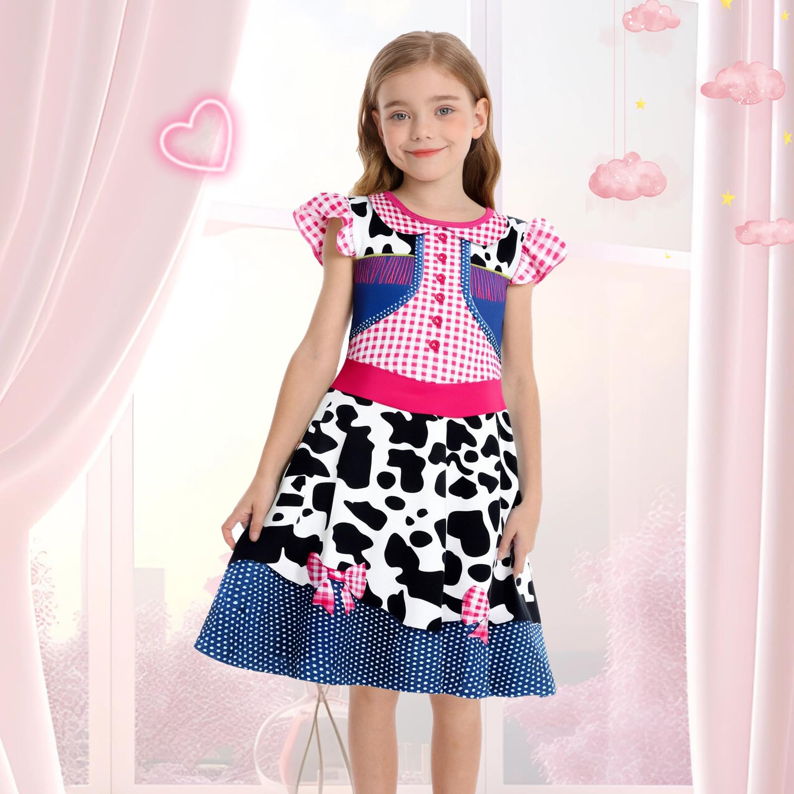 Girl 's cowgirls costume is made of soft skin-friendly and breathable fabric not allergies cute cowgirls dress will make her feel very happy. | This girl 's cowgirls dress is made from a enhanced soft and comfortable fabric. Take your kids on a wonderful story tour. | Cowgirls dress is digitally printed with cartoon graphics clearly visible. Girls ' pink cowgirls costume is the best gift for your little girl. | Perfect for everyday Christmas Halloween shopping vacation role-playing games outdoor activities running sports birthday gifts. | Girls pink cowgirls dress fun all-round clothes that your child can wear anywhere and experience the fun of a cowgirls story.