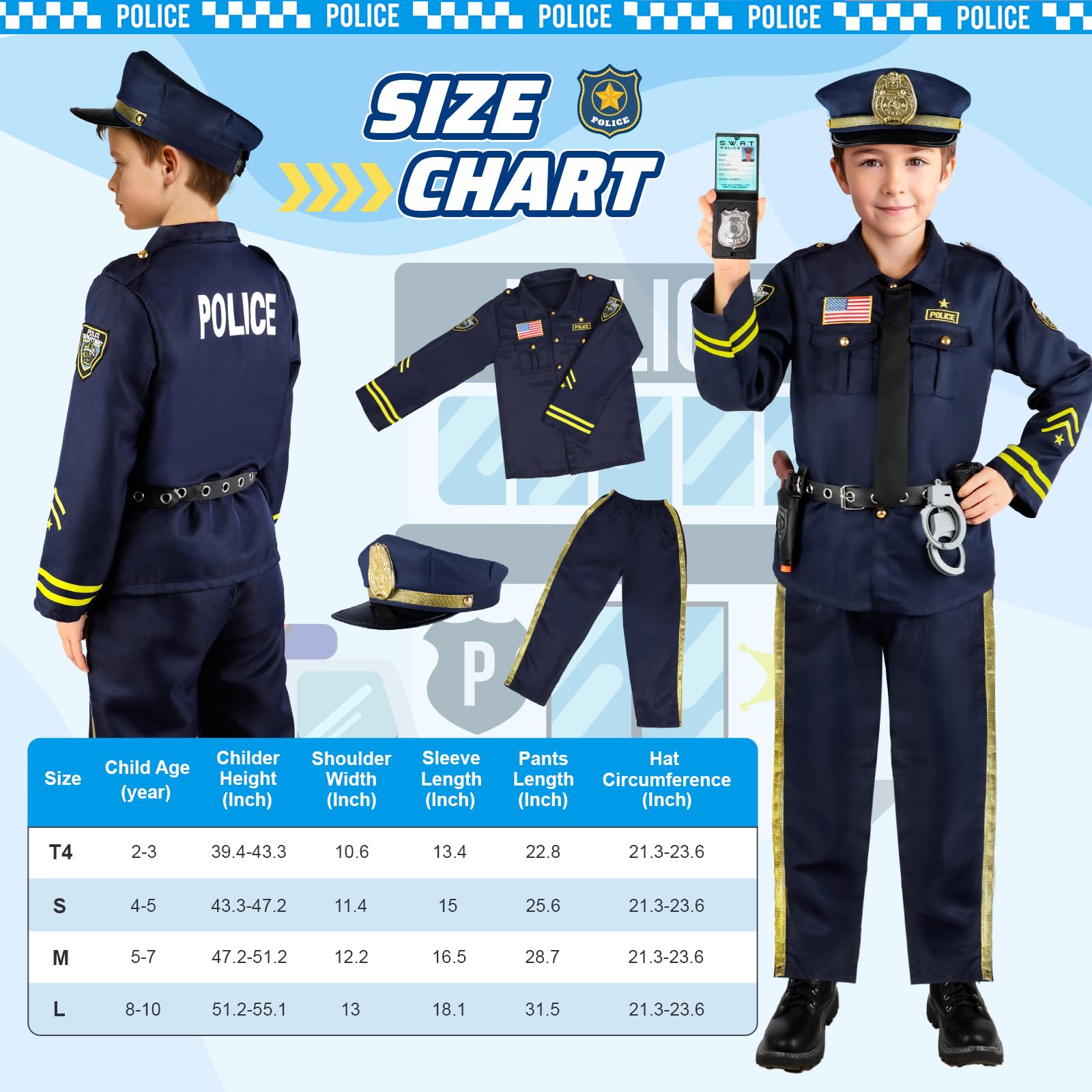 Police Officer Costume Suit for Kids Boys and Girls-S