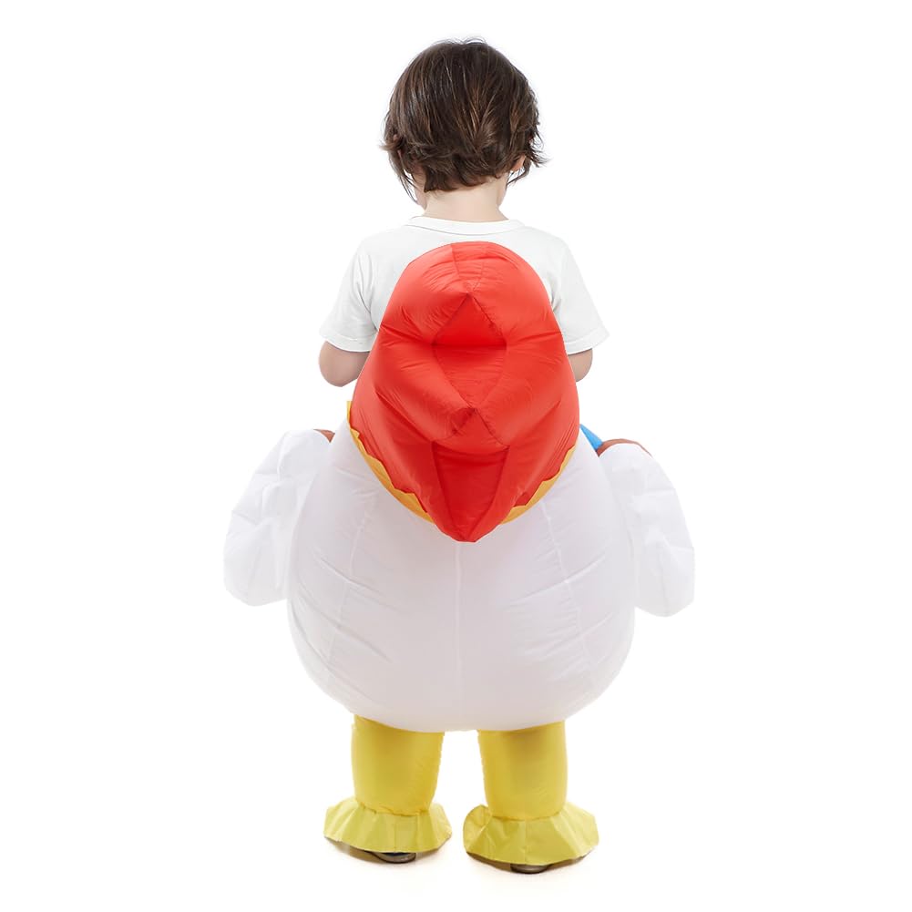 HSCTEK Inflatable Chicken Costume for Kids, Medium White Rooster Ride-On Halloween Outfit, 95% Polyester/5% Spandex