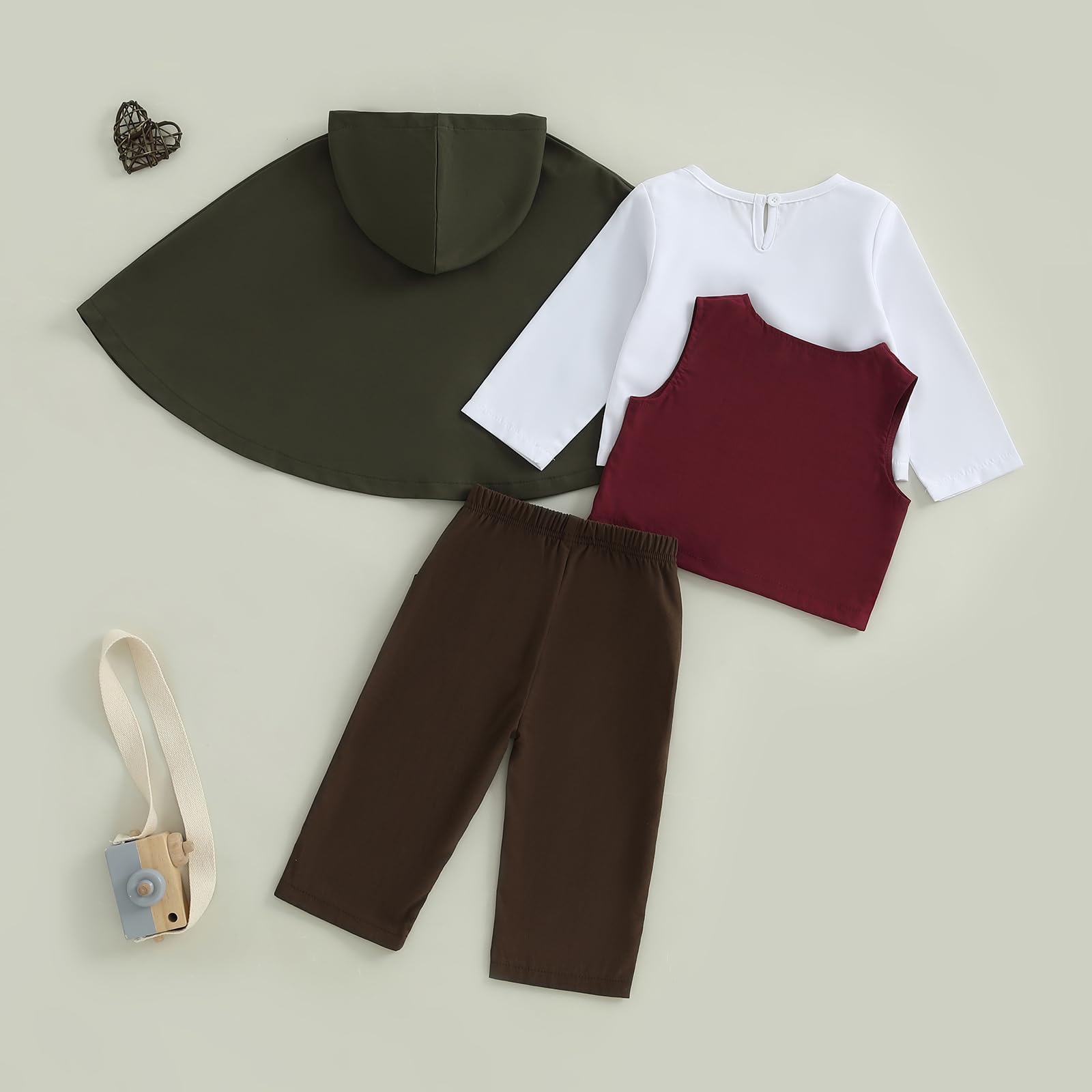 Infant Toddler Baby Boys Halloween Costume Medieval Ring Bearer Long Sleeve Shirt Vest Cloak and Pants 4pcs Outfit Set (Green, 1