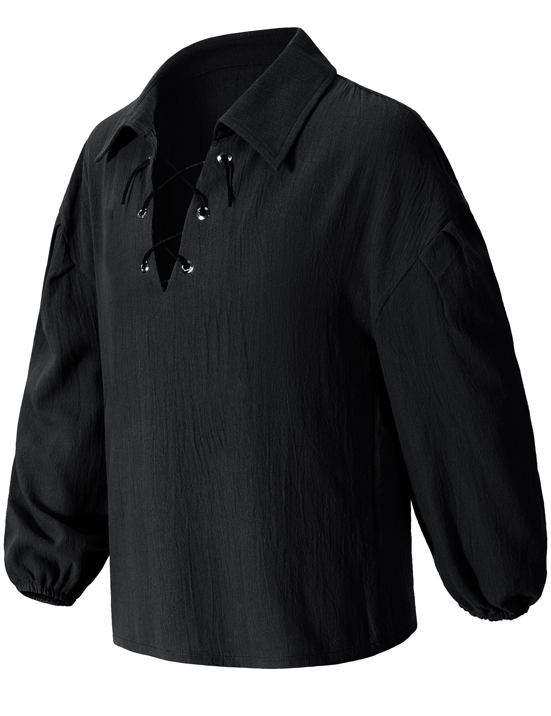 Features: Boy's Halloween costume shirt, vintage role-playing shirt, long sleeves, lace up neckline, loose fit, elastic wide cuffs, dropped shoulders, unique historical era style. | Material:This vintage shirt is made of high-quality cotton material, providing a soft, comfortable, and breathable wearing experience. | Size:3-4T; 4-6T; 6-8 Years; 8-10 Years; 10-12 Years;Please refer to the Size Chart for detailed dimensional data. | Design:When worn, it has a puffy appearance, and the sleeves feature a cuffed design, giving it a very vintage feel. | Occasions: Perfect for Viking shirt, Medieval themed parties, Renaissance role play, Pirate cosplay,pioneer dress up,Stage performance,Halloween, Christmas, Carnival,celebrations, festive Party,birthday party games, and so on.