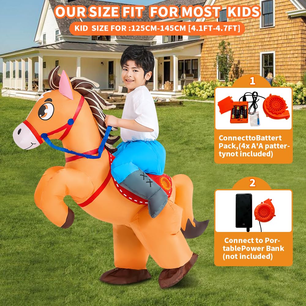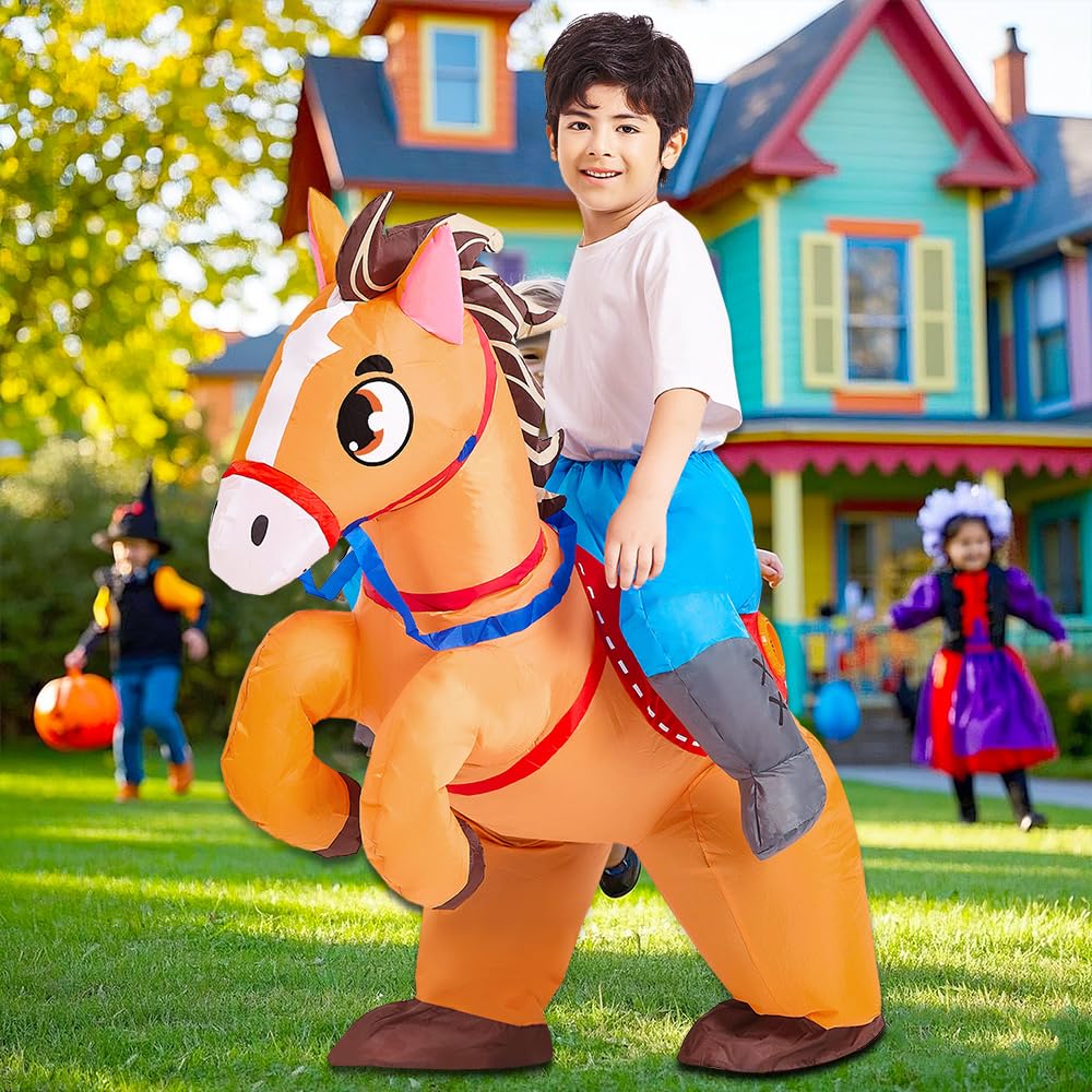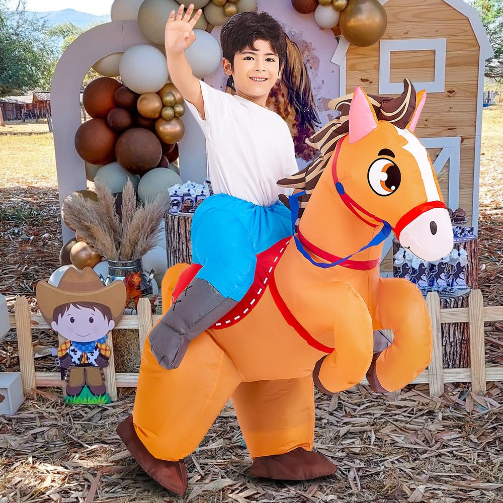 KOOY Inflatable Horse Costume Kids Riding Blow up Cowboy Costume Funny Ride on Horse Suits for Halloween Cosplay Party