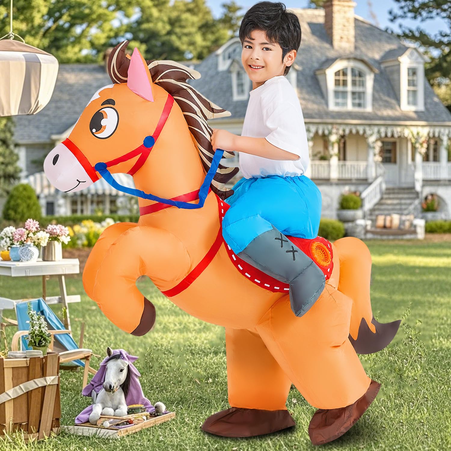 View compareKooy Inflatable Horse Costume Kids Riding Blow Up Cowboy Costume Funny Ride On Horse Suits For Cosplay Party