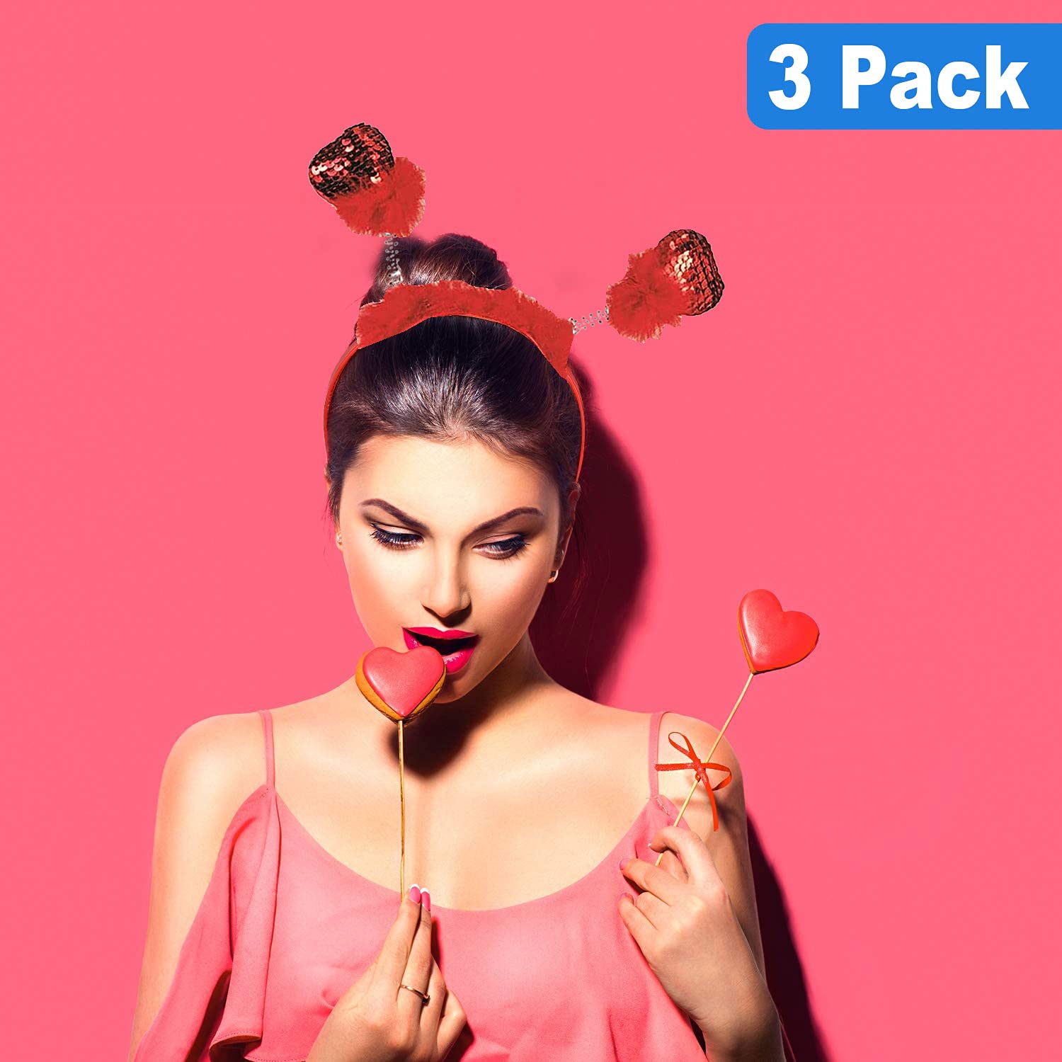 View comparePMU Valentines Day Red Sequin Heart Head Boppers Headband Holiday Party Costume Accessories and Photo Props (1/Pkg) Pkg/1