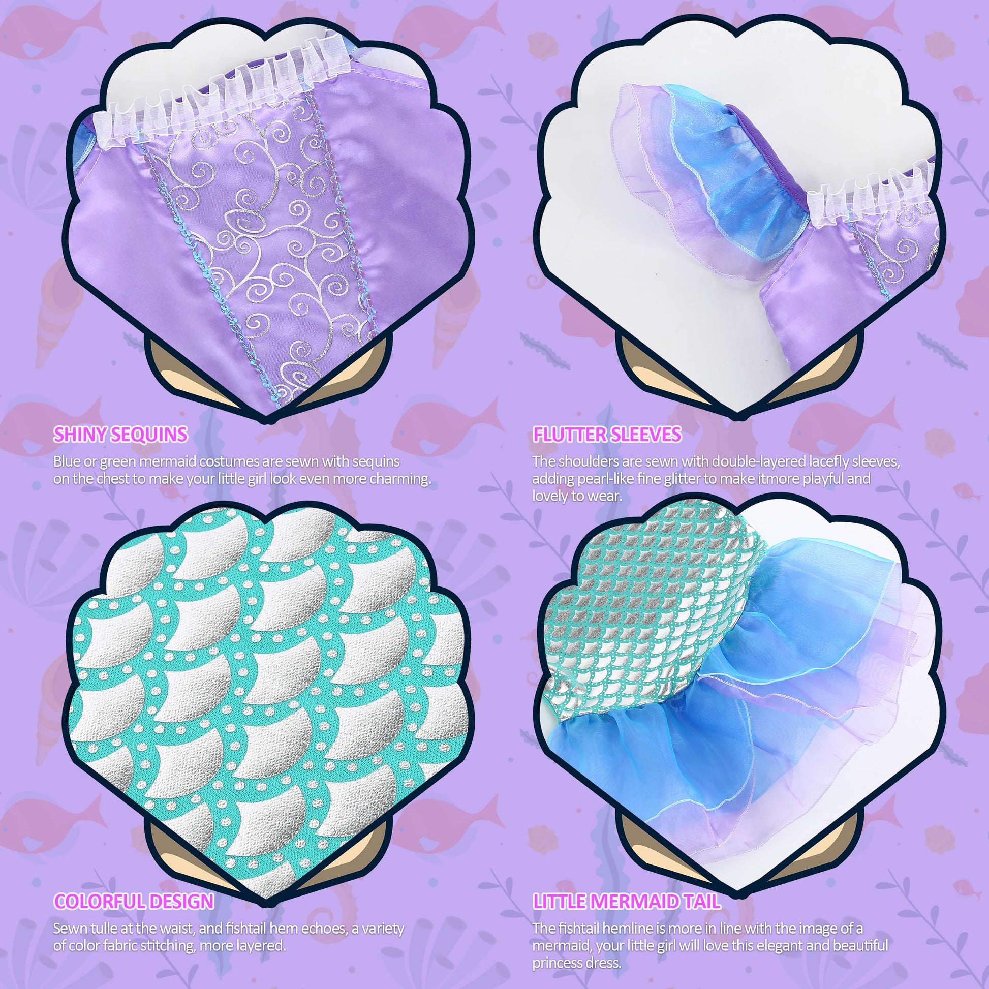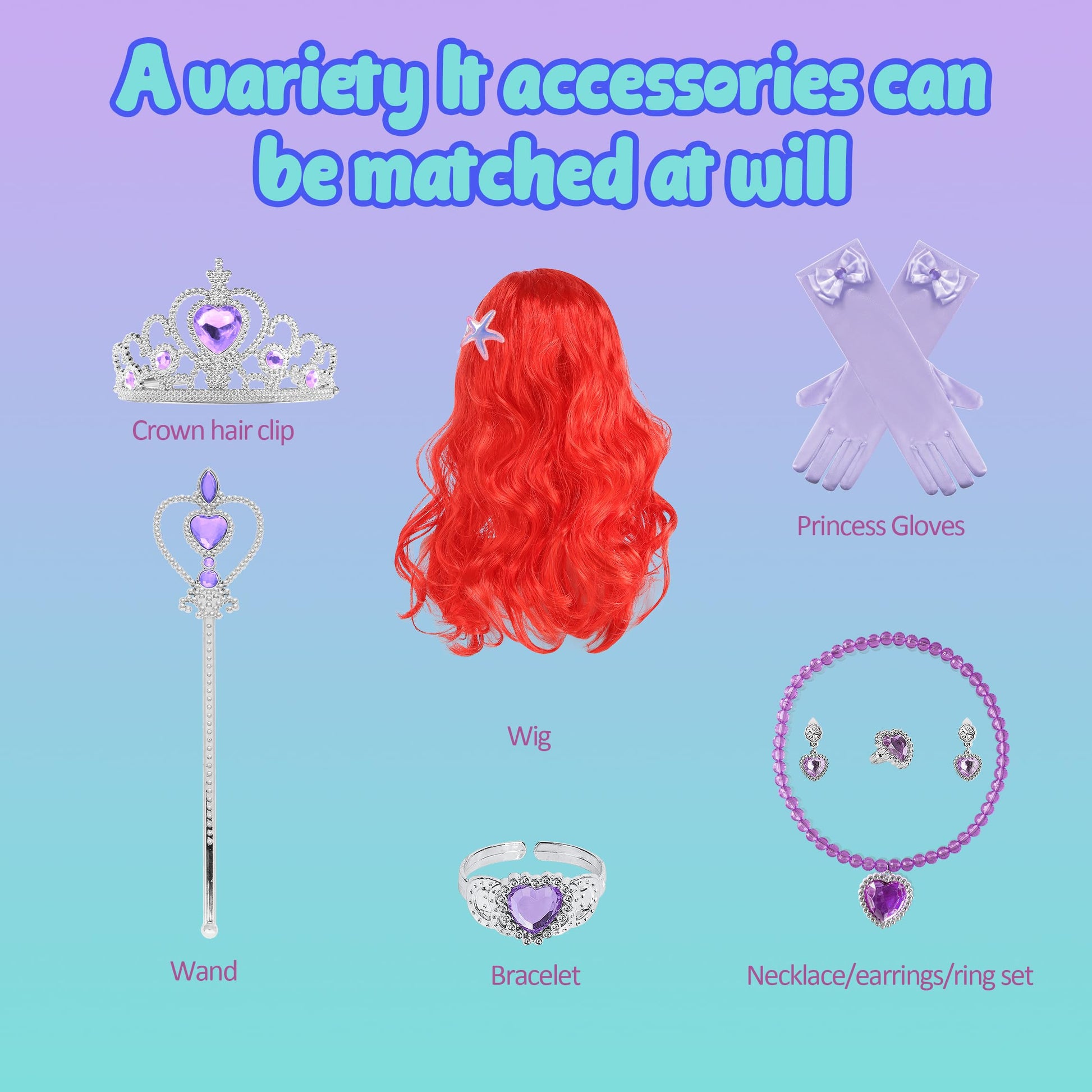 View compareRelarliya Little Princess Costume For Girls Cosplay Ariel Princess Dress Birthday Party Halloween Christmas Outfits 9-10Y