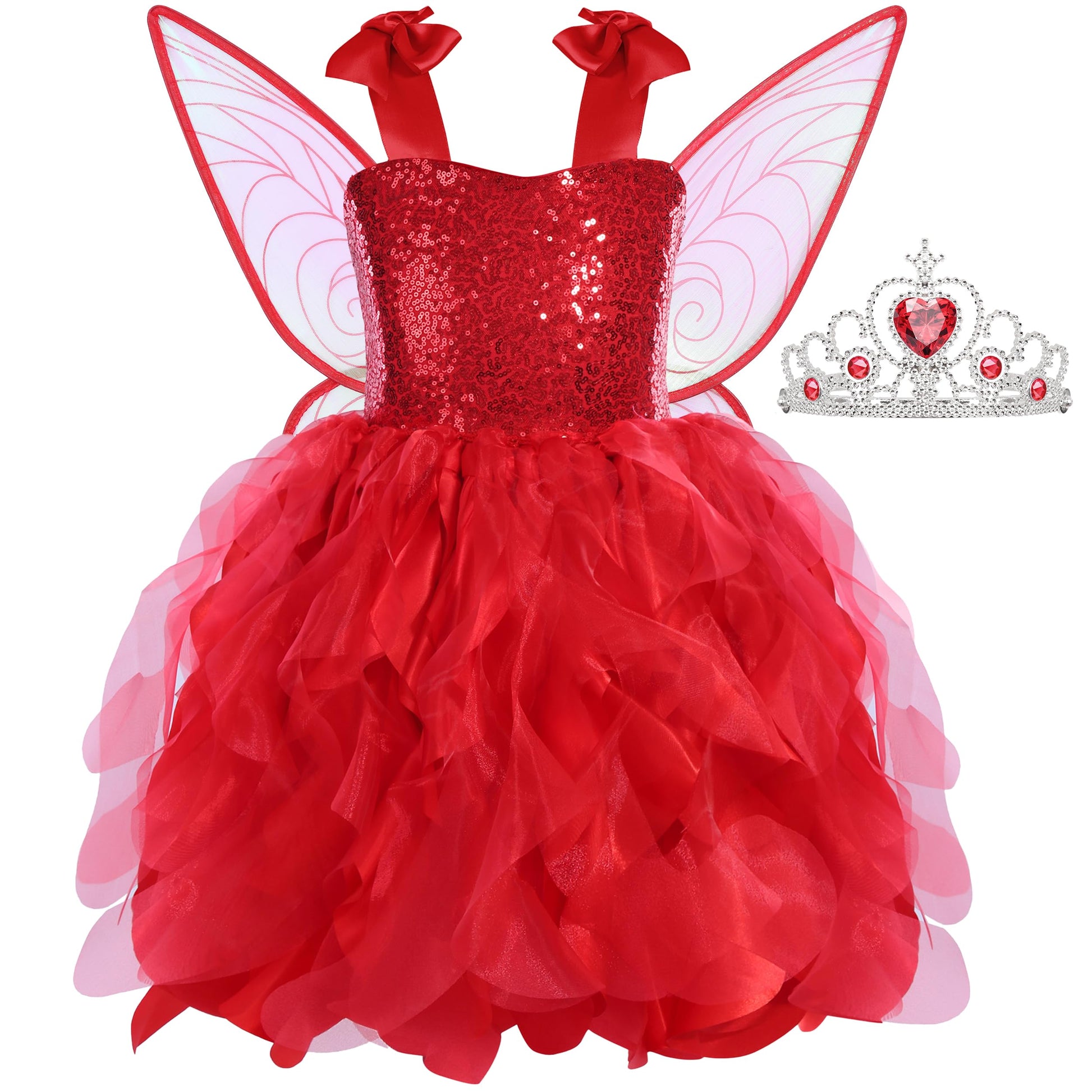View compareSoyoekbt Fairy Costume for Girls Princess Tutu Dress with Butterfly Wings for Girls Birthday Party Dress Up (Red, 3-4 Years)
