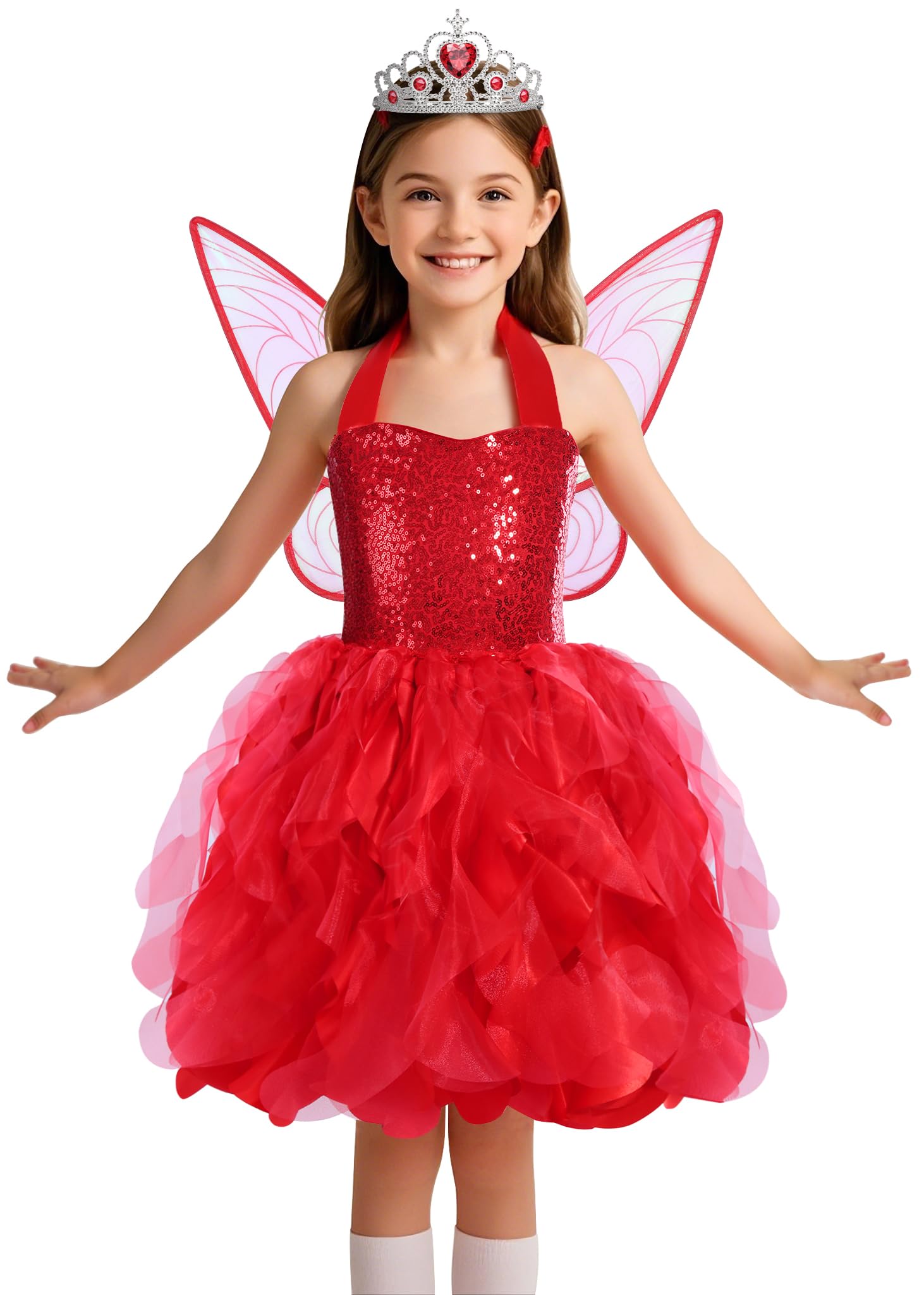 View compareSoyoekbt Fairy Costume For Girls Princess Tutu Dress With Butterfly Wings For Girls Birthday Party Dress Up (Red, 7-8 Years)