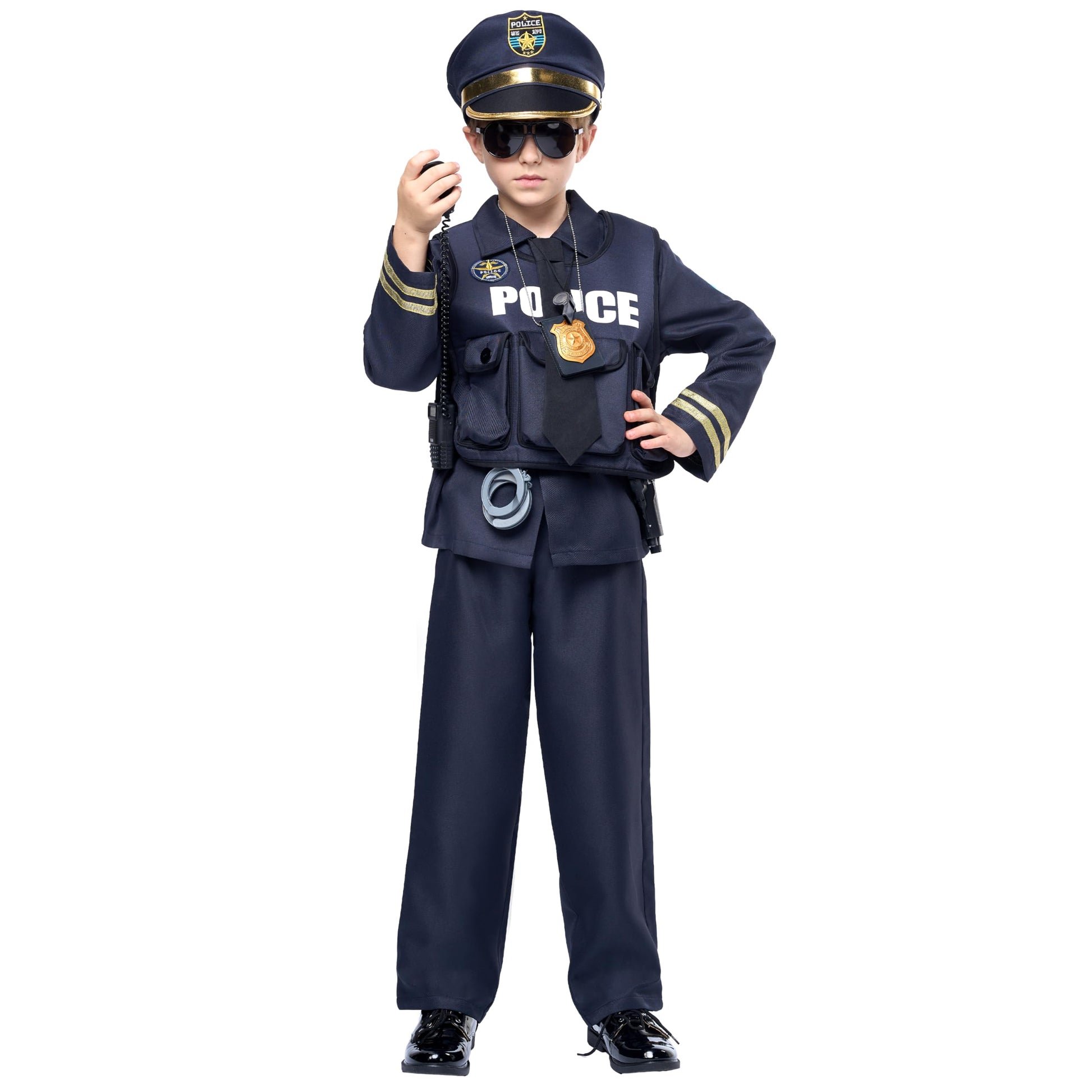 Spooktacular Creations Boys Police Costume Kids Dark enhanced Style for Child Halloween Police Themed Events and Role Play Parties S