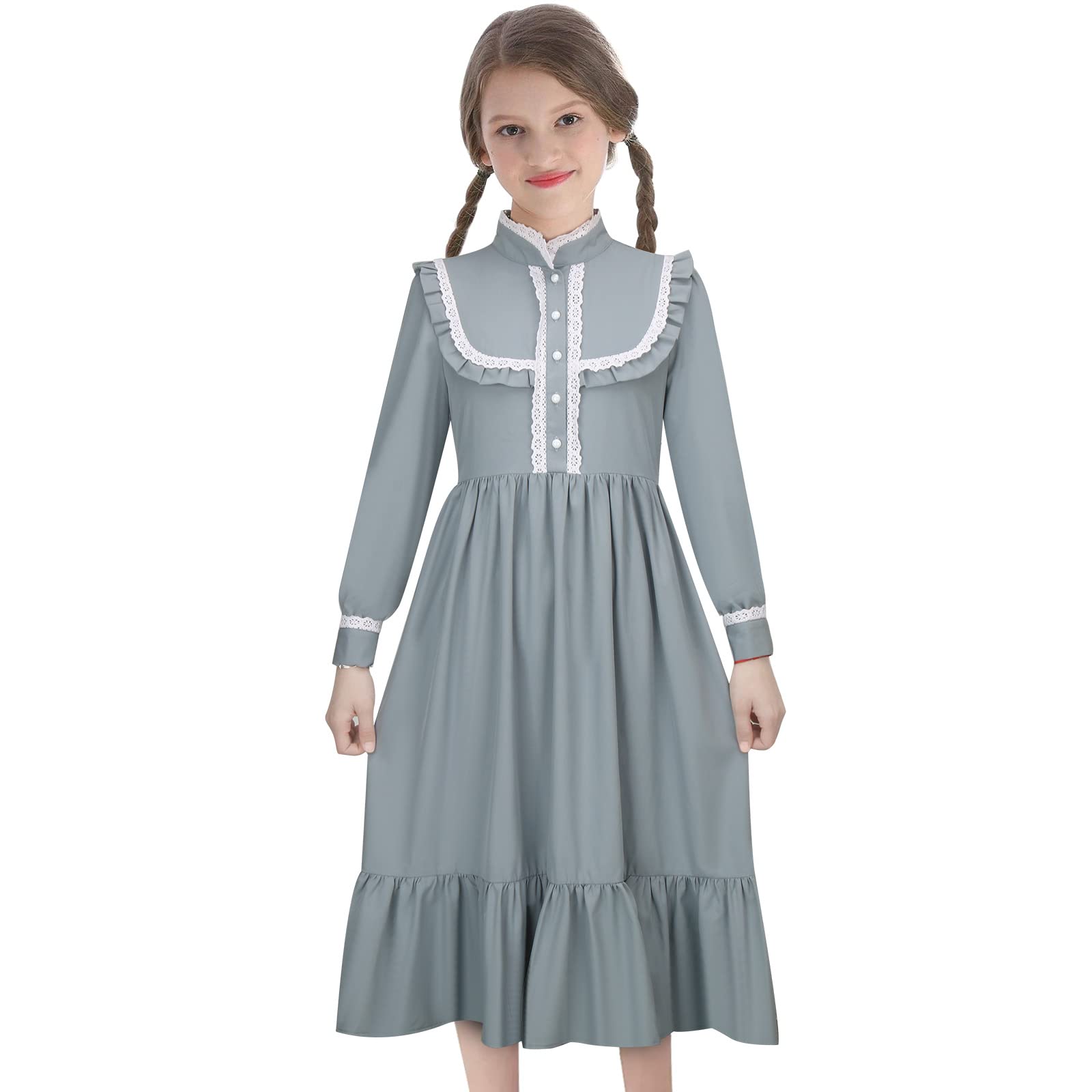 View compareTodollcos Girlsharriet Tubman Costume Pioneer Colonial Dress Victoria Retro Rustic Skirt Kids Cosplay Outfits Party (Blue, 150Cm