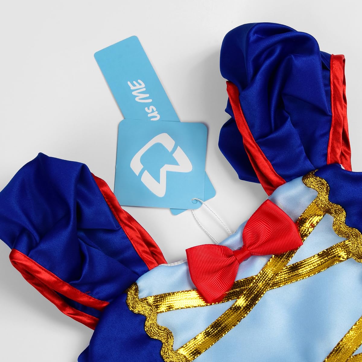 Light Up Snow White Costume for Girls Snow White Dress Princess Costume Party Dress Up Outfit with Rich Accessories The classic colors, cute bow adornment, simple and beautiful puff sleeves, fluffy multi-layer light up skirt highlight the unique design. Go with 2 pcs of LED string lights (one for wrapping around the skirt by yourself and one for backup). This snow-white light up dress goes with button batteries for the string lights, and you dont need to prepare other batteries for this dress. It has three-layered fluffy skirt and soft cotton lining on the inside, so the dress doesnt irritate the skin. Perfect for girls birthday party, Christmas, Halloween, princess tea party dress up, stage performance, pageant, role play and daily wearing. Detailed Size Chart (in Inches): 3T/100: chest: 21~25-waist:21.2~25.2-dress length: 22.8 3-4T/110: chest: 22.5~26.5-waist:22.5~26.5-dress length: 24.8 5-6Y/120: chest: 24~28-waist:23.5~27.5-dress length: 27.2 6-7Y/130: chest: 25.5~29.5-waist:25~29-dress length: 29.1 7-8Y/140: chest: 27.5~31.5-waist:26.7~30.7-dress length: 31.1 8-9Y/150: chest: 29.5~33.5-waist:28.3~32.3-dress length: 33.1 Notice: Please allow 0.4-0.8 inches measuring deviation due to manual measurement.