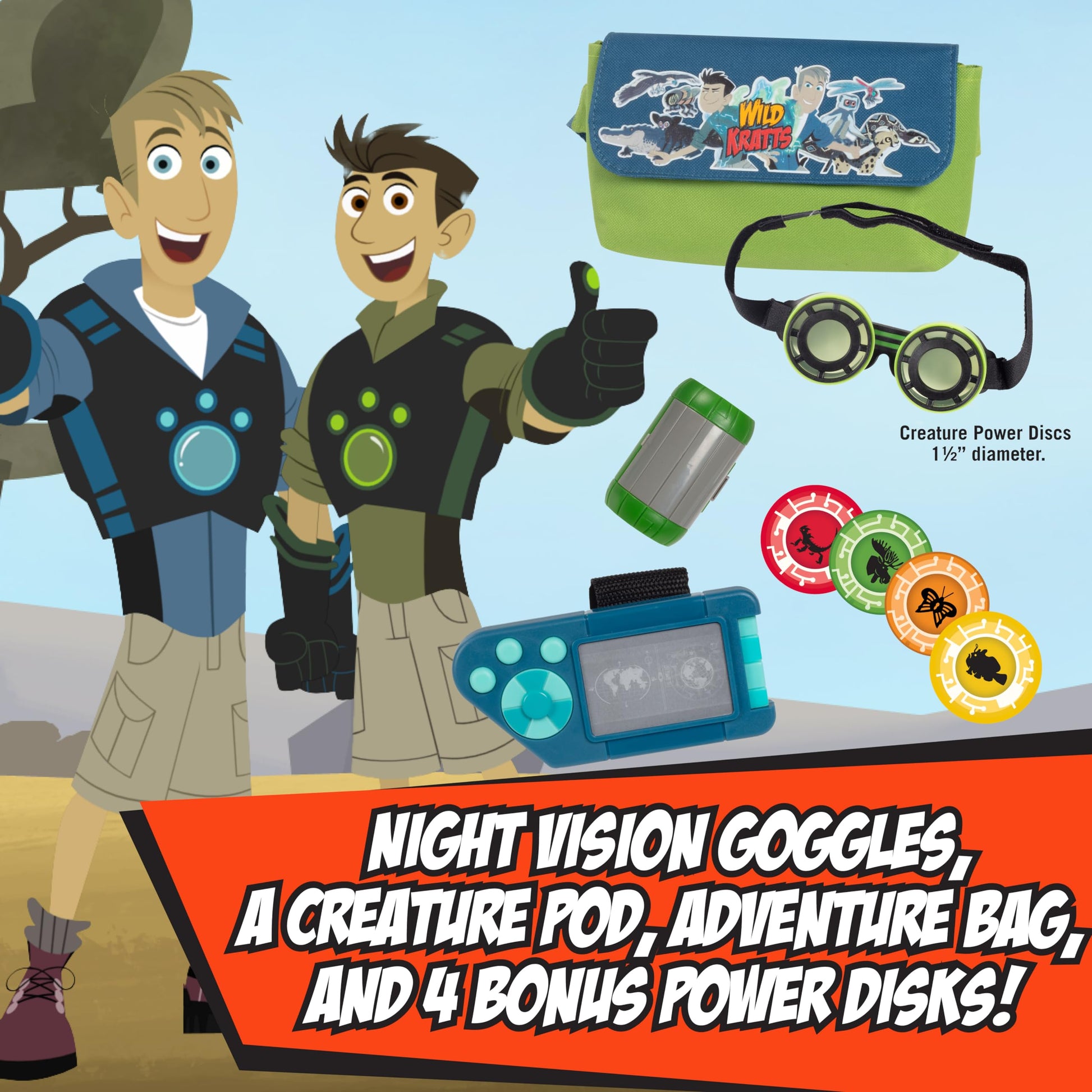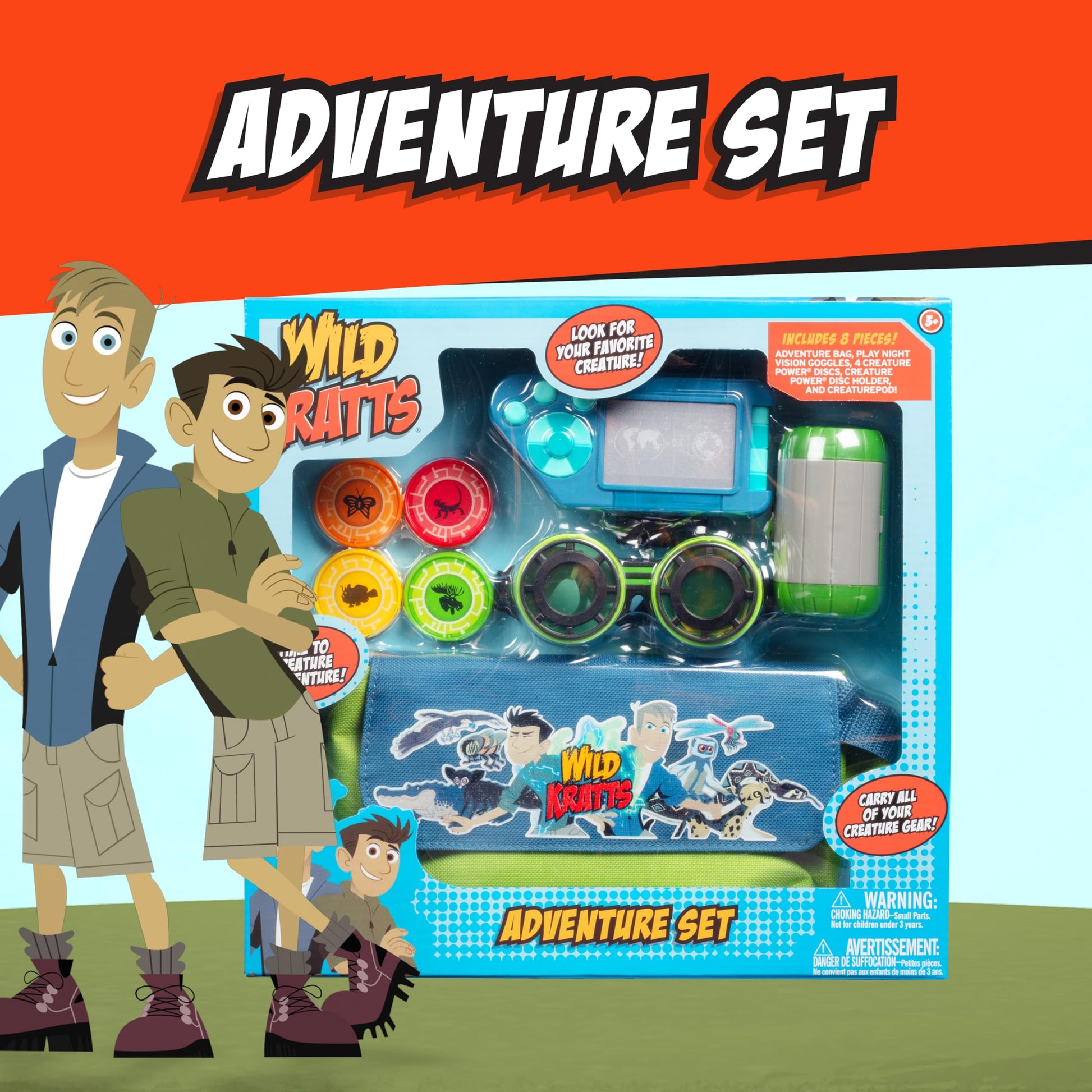 - Q: What items are included in the Wild Kratts Adventure Playset? A: The playset includes 8 pieces: night vision goggles, a creature pod, an adventure bag, 4 bonus creature power discs, and a disc holder, allowing for immersive pretend play experiences.