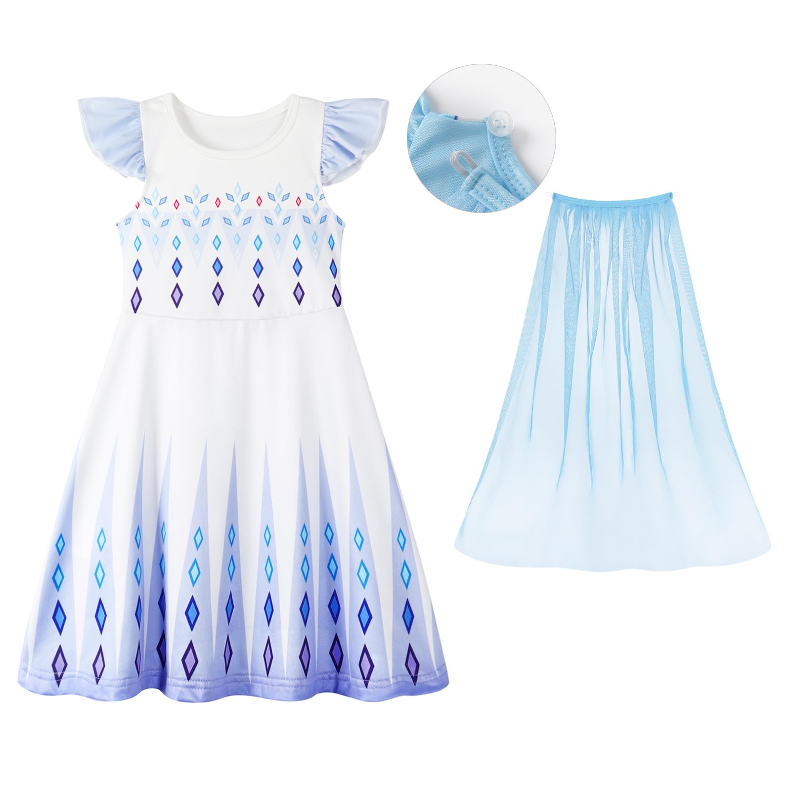 ?Perfect Princess Dress Up Clothes?Dressing up has never been so enchanting with different Princess outfits to choose from,Your child can dress up as her favorite character. | ?High Quality Fabric?Our Princess Dress for Girls is made of polyester and cotton lining, the fabric is very soft,smooth,skin-friendly breathable & comfortable and will not make your girls feel itchy or irritating. | ?Lovely Design?Princess puffy Sleeve Dress for girls, vivid 3D print,its gorgeous and vibrant.looks very lovely and cute.A removable cape adds a touch of magic to the princess outfit. | ?Occasion?perfect for daily wear, halloween cosplay,theme party,christmas,carnival,party event,school play,video shooting,cosplay costume,performance,role playing Game,etc. | ?Available Sizes?Add More Fresh,Stylish and Fashion Fever to Her Princess Wardrobe.Gift for Girls Age 3,4,5,6,7,8,9,10 Year Old for Birthday,Halloween, Christmas Party.Make Every occasion special for your little princess who are obsessed with princess role play.