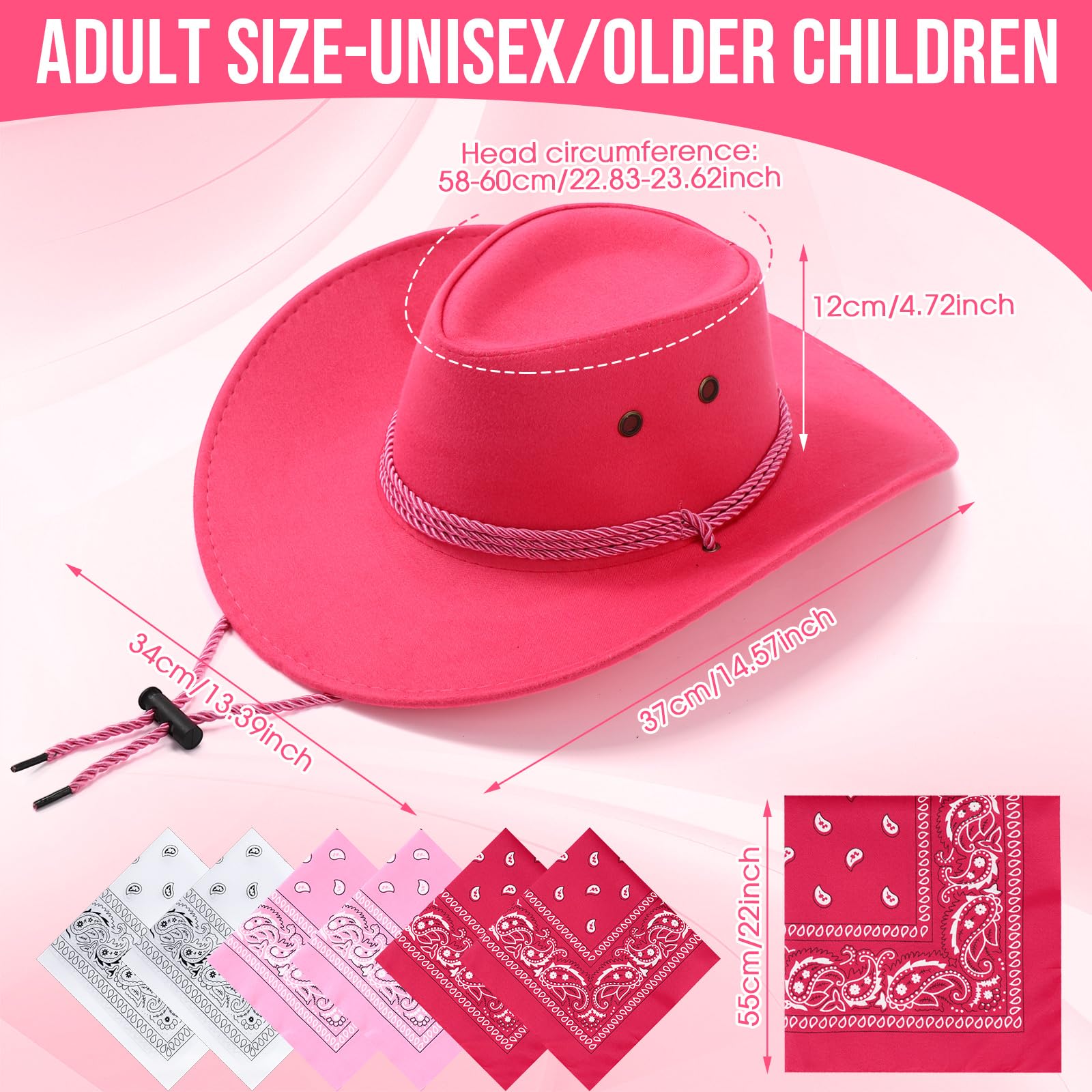 View compareZhanmai 12 Pcs Cowboy Hat and Bandana Cowboy Cowgirl Hats Bulk Western Party Costume Halloween Accessory (Pink Mix Color,Polyest