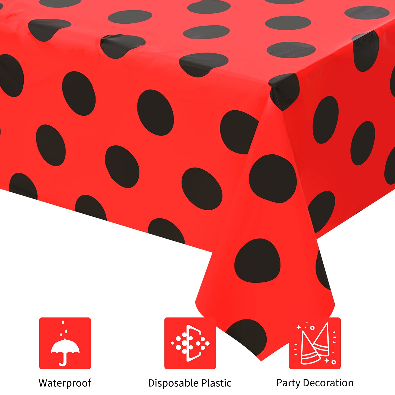 2 Pcs Ladybug Tablecloth Red Black Polka Dots Plastic Table Covers 87 x 51 Inches Ladybug Themed Party Decorations for Birthday