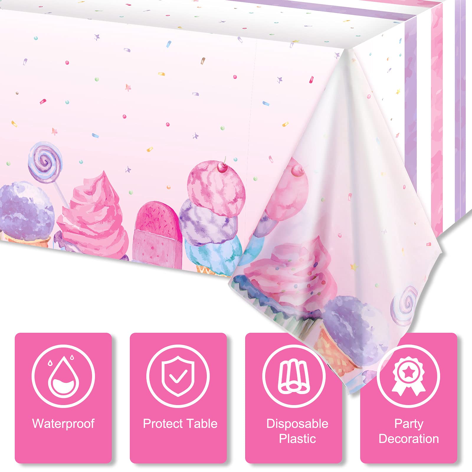 3 Pieces Ice Cream Party Tablecloth Ice Cream Table Cover Disposable Plastic Tablecloth Summer Table Covers for Baby Girls Showe