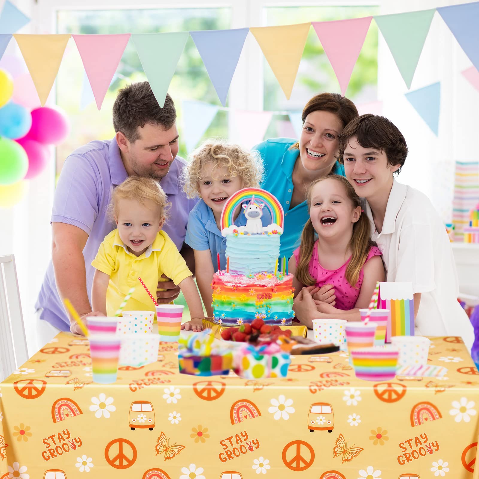 4 Pcs Stay Groovy Tablecloth Retro Hippie Boho Party Table Covers Daisy Flower Bohemian Rainbow Tablecloths Disposable Waterproo