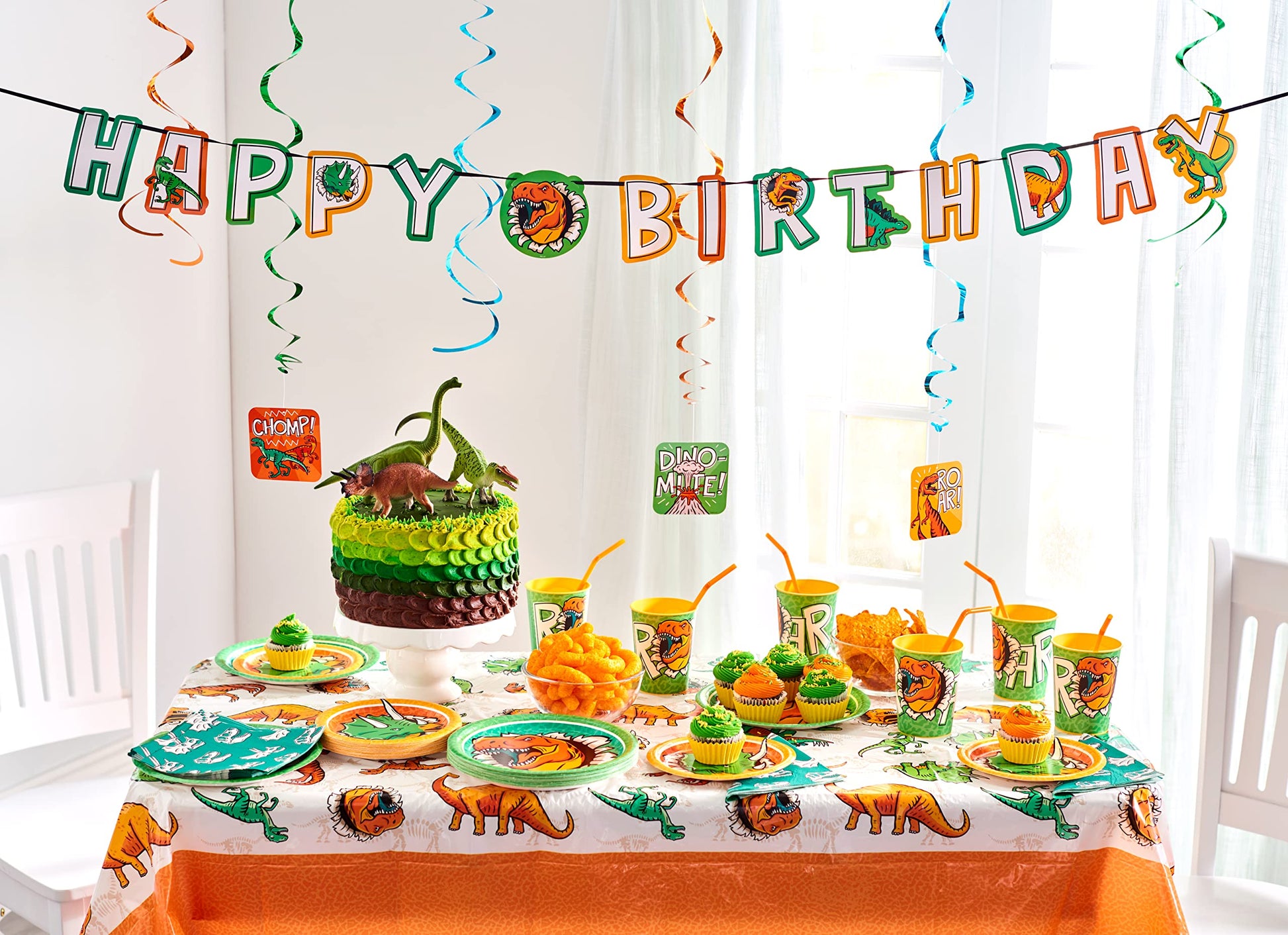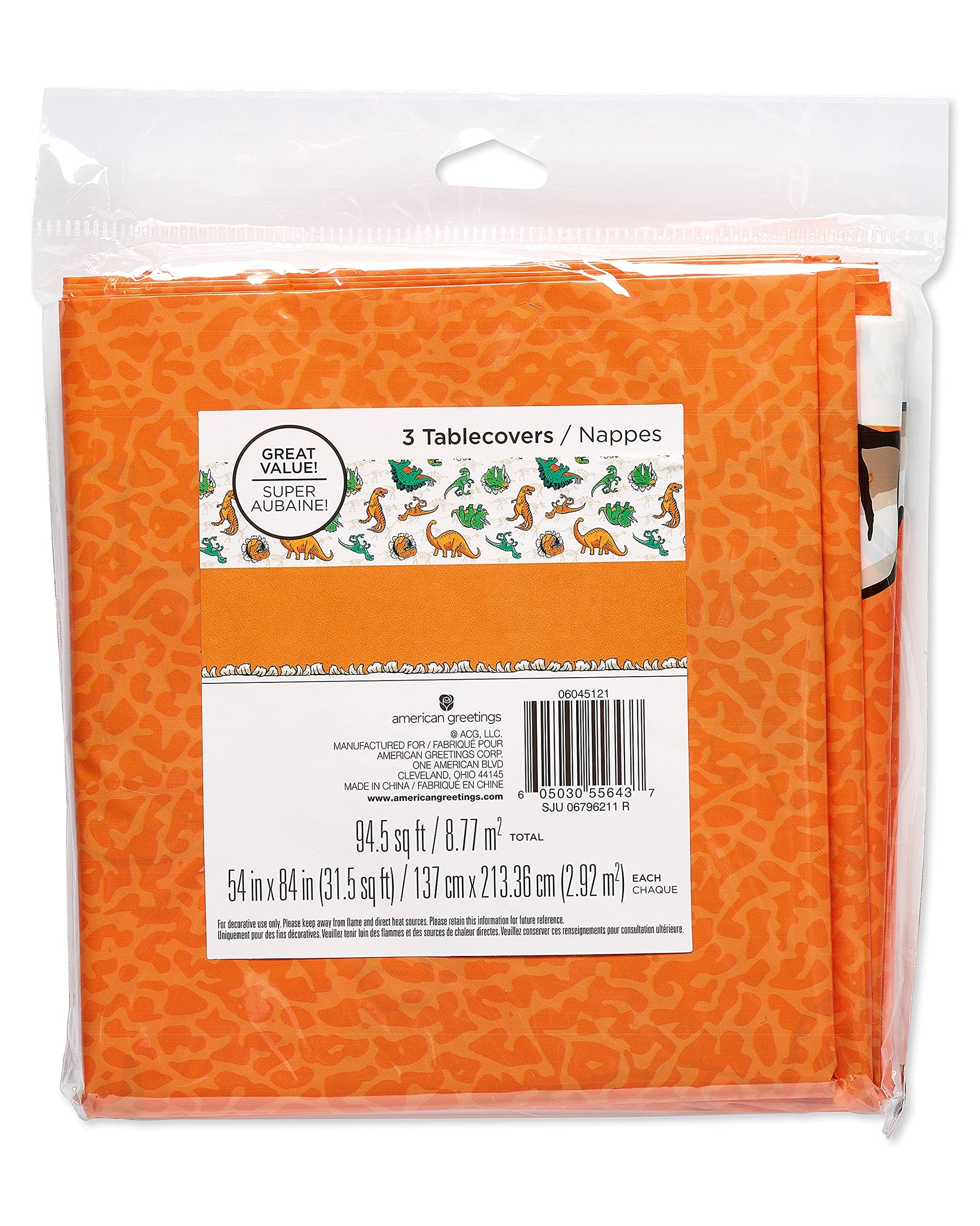 When it comes to setting the table for birthday parties, American Greetings has got you covered! These dinosaur-themed tablecloths are a roaring good time. The pack includes 3 plastic table covers for indoor or outdoor use. American Greetings party supplies make entertaining and clean-up easy and fun. This set is sure to make your celebration DINO-mite!
