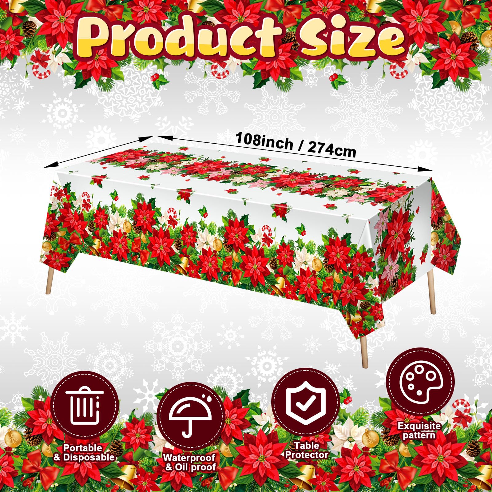 View compareNewwiee 3 Pcs Christmas Poinsettia Tablecloths Red White Flower Plastic Table Covers 54 x 108 Inch Disposable Rectangle Xmas Tab