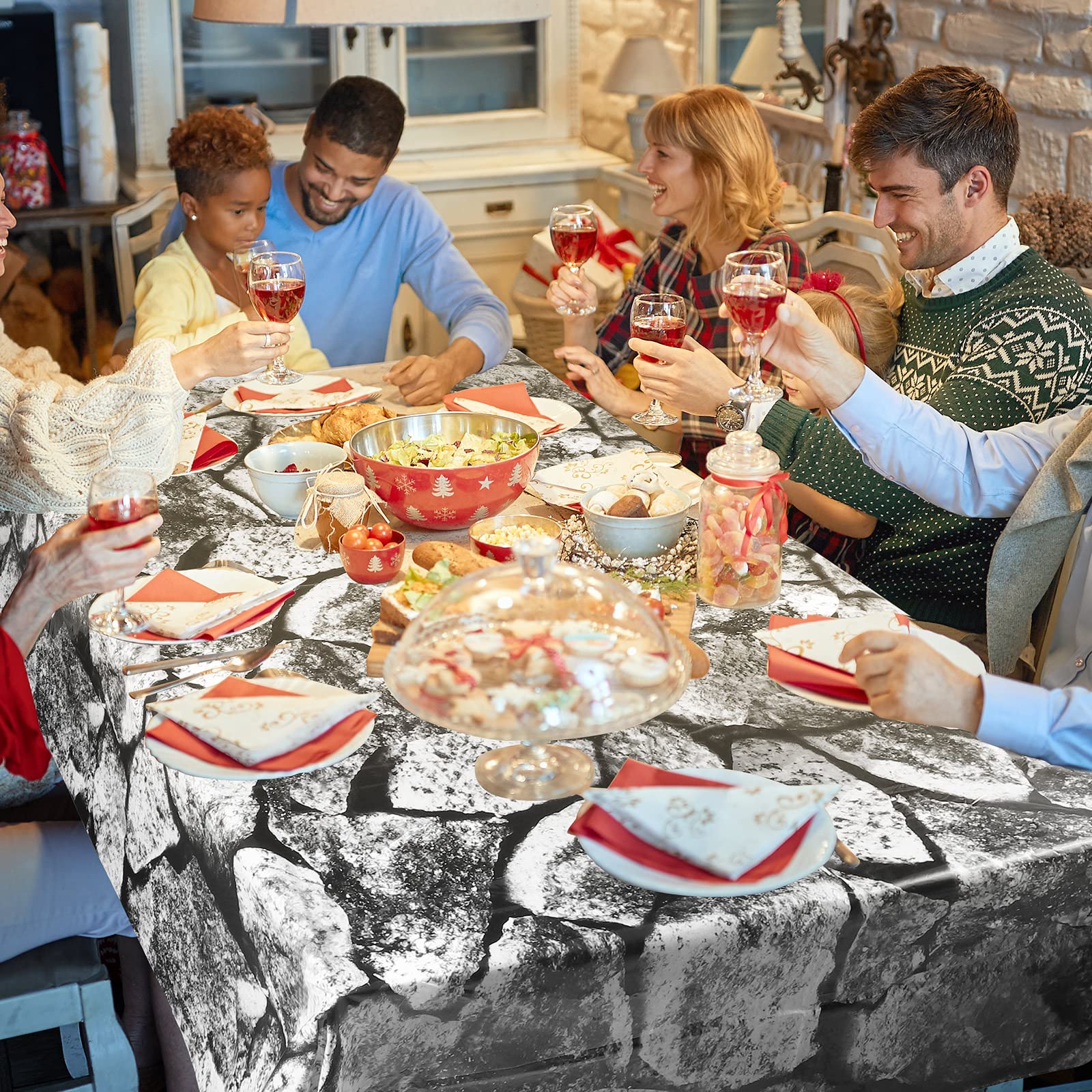 Patelai 4 Pieces Stone Wall Tablecloths Disposable Plastic Table Covers 108 x 54 Inch Medieval Party Decorations Brick Pattern T