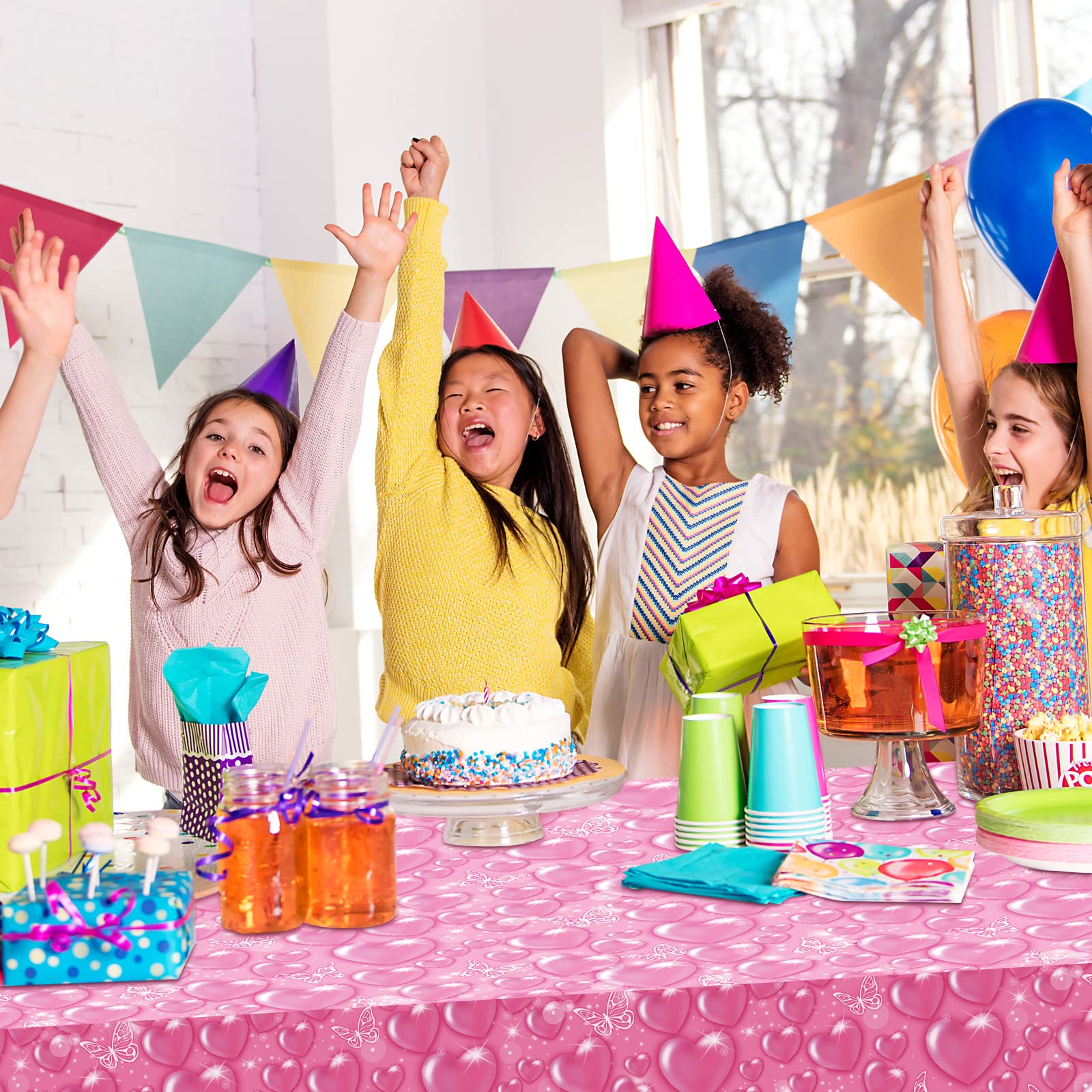 Features:Adorable present supplies:Our pink table cloths are ideal for you to send to your family members, friends, colleagues and more. They will feel your concern and love, and your relationship will be improved.Easy to clean:These plastic table clothes are waterproof, ideal and functional for you to keep your tables clean and neat, and protect them from stains, bringing you more convenience.Specifications:Material: PE plasticColor: as pictures shownSize: approx. 1.37 x 2.74 meters/ 54 x 108 inchesPackage includes:3 x Y2K 2000s pink party tableclothsNotes:Manual measurement, please allow slight errors on size.The color may exist a slight difference due to different screen displays.