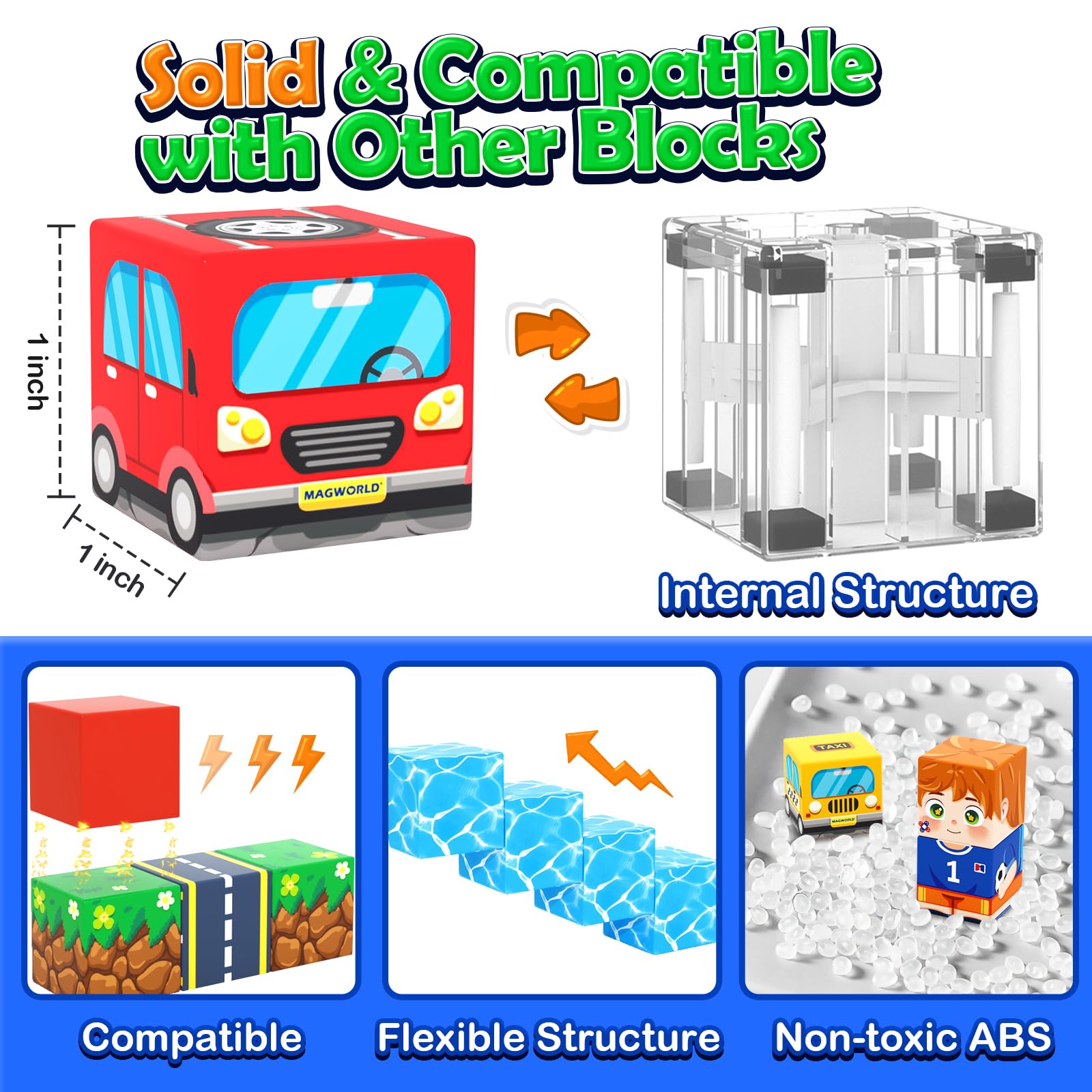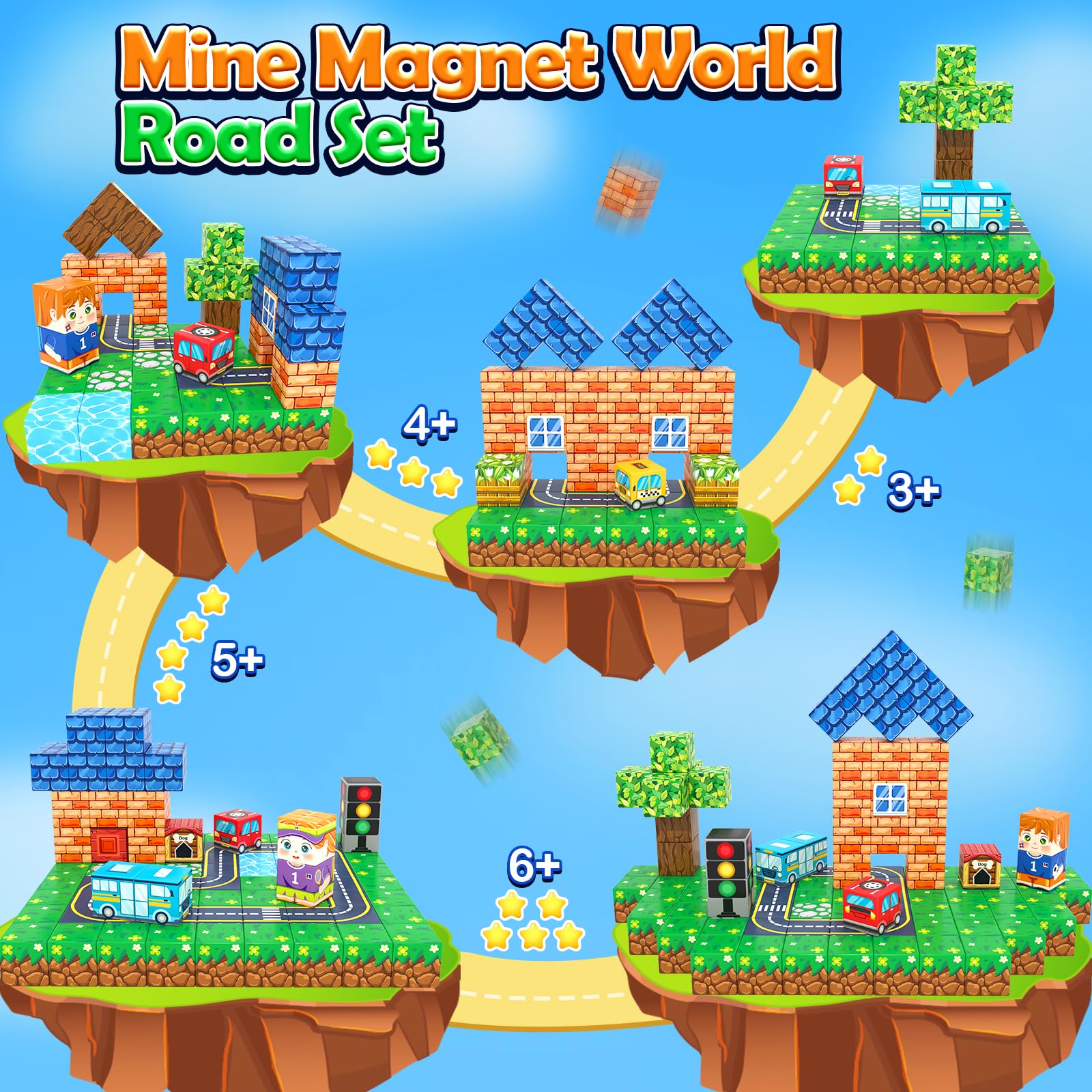 100PCS Magnetic Blocks - Build Mine Magnet World Road Set, Magnet Building Blocks Toddler Toys Creative Kids Games, STEM Sensory