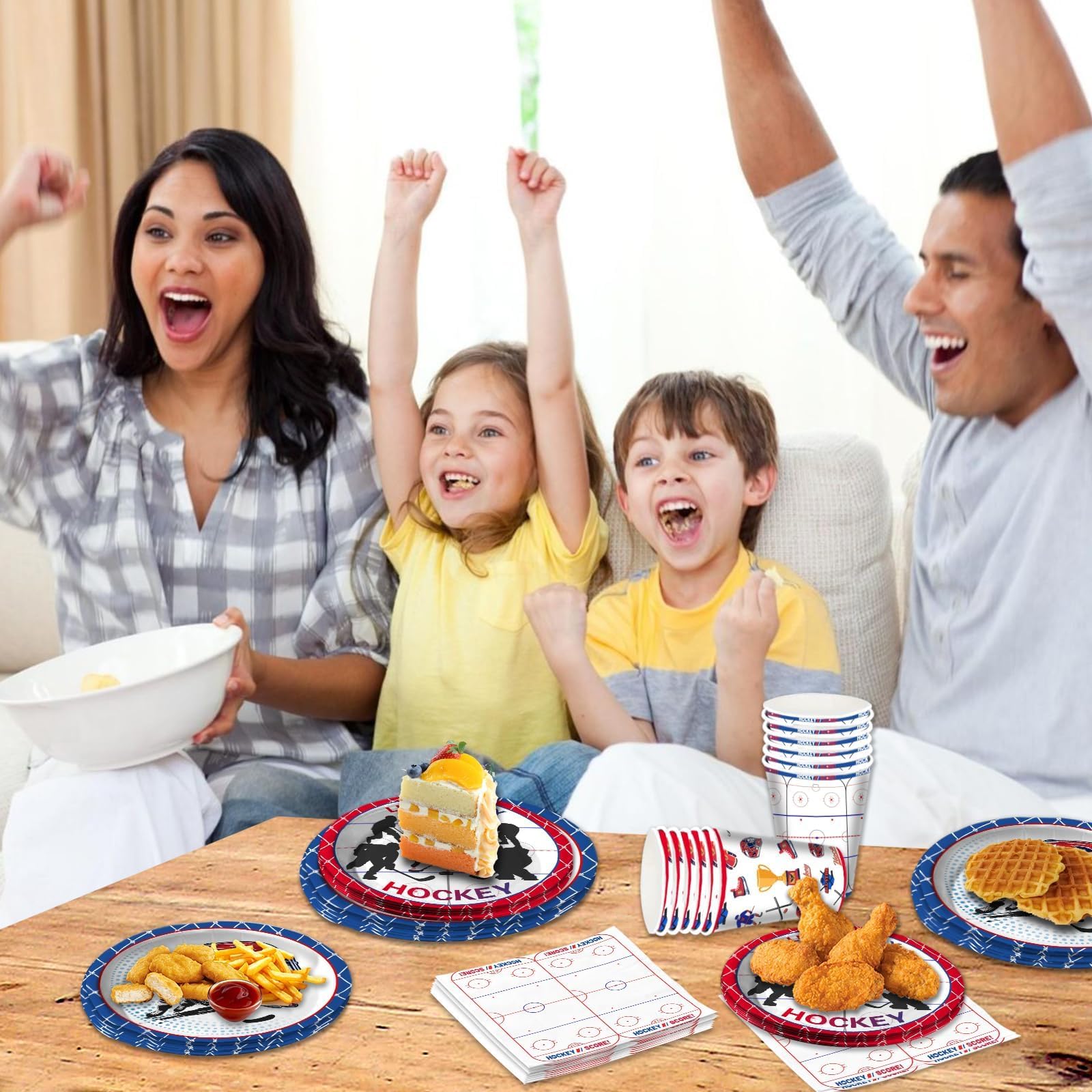 Hockey Party Games Decoration Paper Plates, Napkins, Cups are perfect for Hockey party and Hockey birthday party, next game day sports event party, catering and other Hockey competition with friends or family