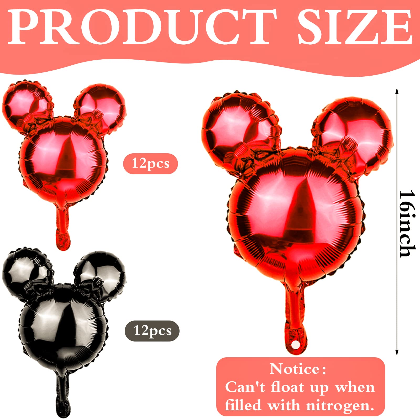 24 Pcs Mouse Head Foil Balloons Red Mouse Birthday Mylar Balloons Party Supplies Kit Black Mouse Aluminum Foil Balloon For Kids