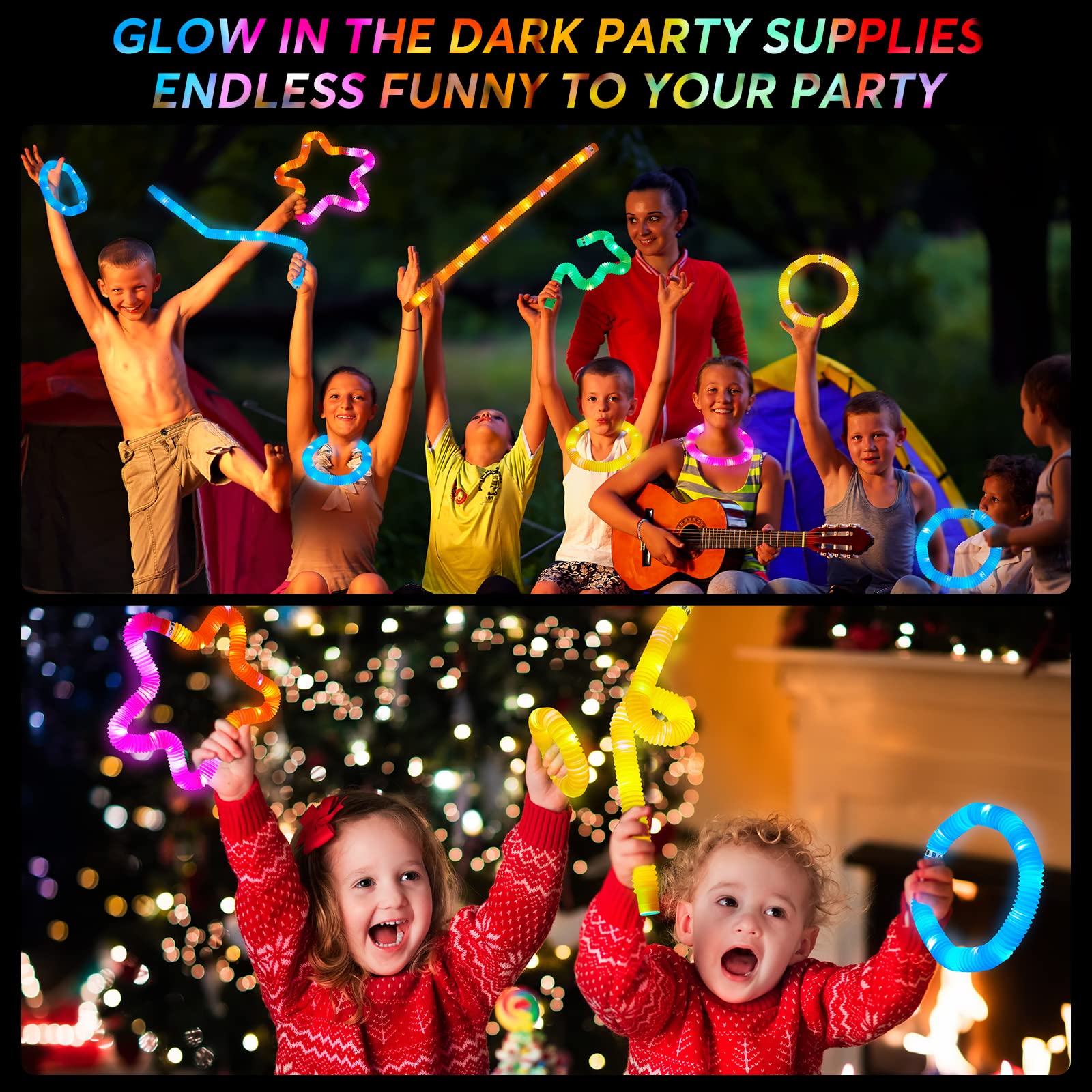 - Q: Can these glow sticks help with sensory issues? A: Absolutely! The stretching and twisting of the LED Pop Tubes create a satisfying 'pop' sound, which can help divert attention and relieve anxiety. They are great sensory toys for children with autism or sensory sensitivities, providing a fun and calming experience.
