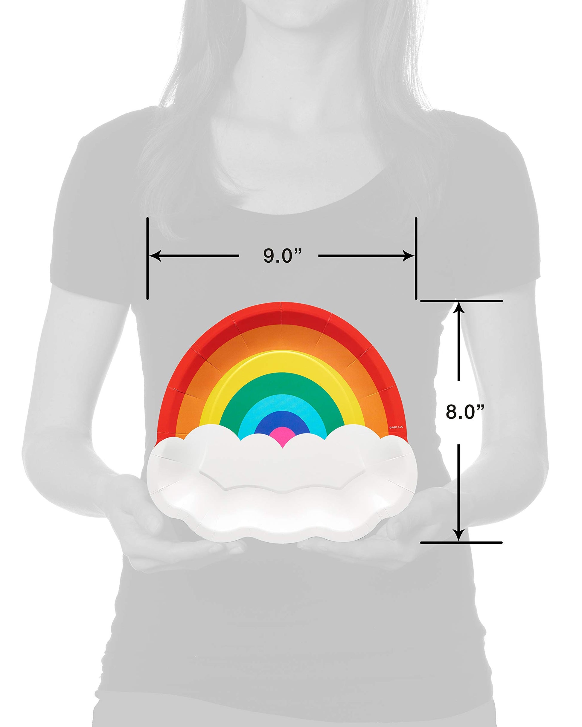 Featuring a rainbow-above-the-clouds shape and design, this 36-pack of plates is great for birthdays, parties, and other gatherings. Each plate measures 9 across, so theyre perfect for both snacks and entr es. Perfect American Greetings party supplies for a birthday party or rainbow-themed party! A great value for large party settings at home, the classroom, daycare, and other venues.