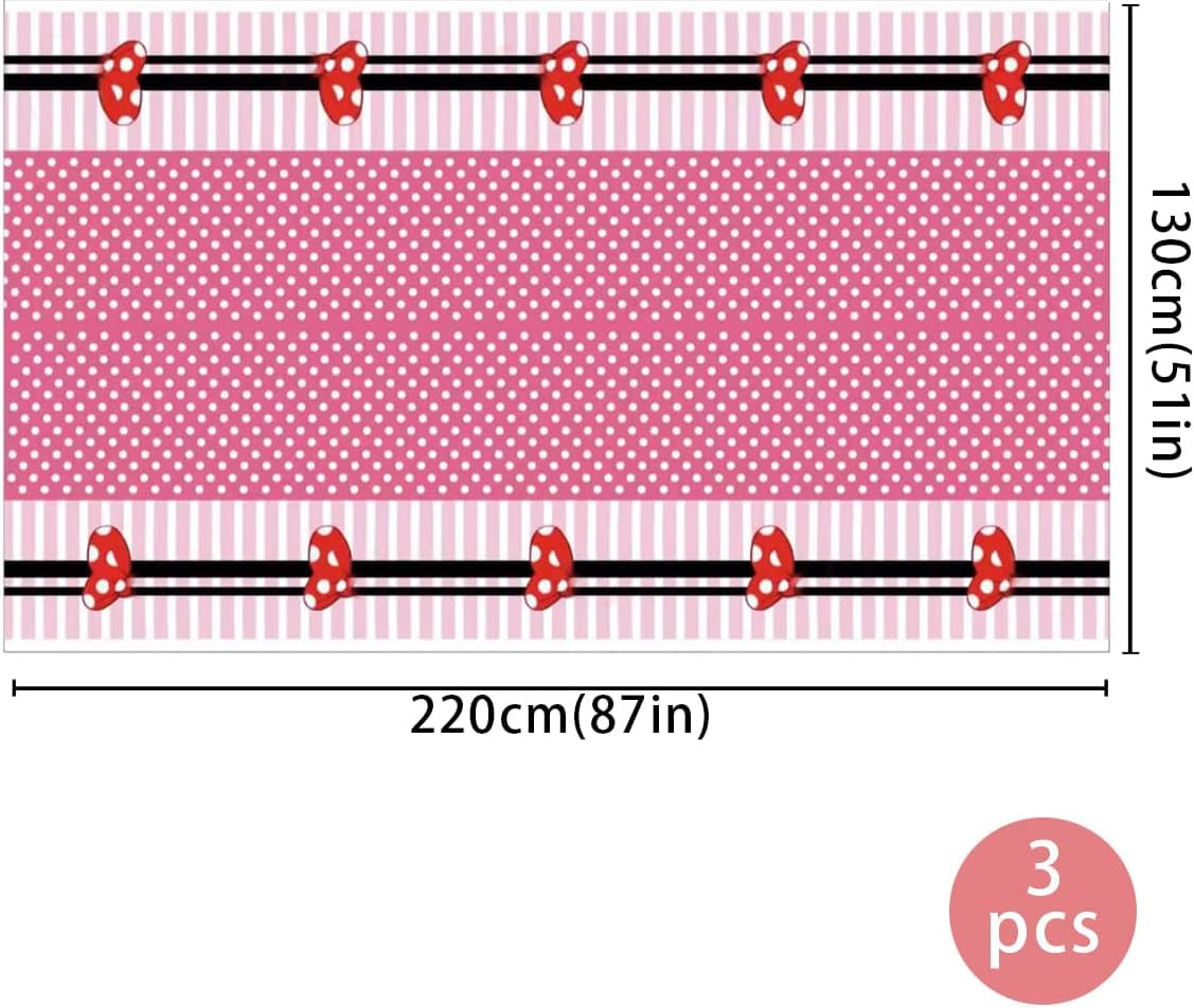 ANFGANC 3pc Mouse Tablecloth Mouse Party Supplies Disposable Pink Bow Plastic Table Cover for Girls 1st,Oh Twodles Birthday,Baby