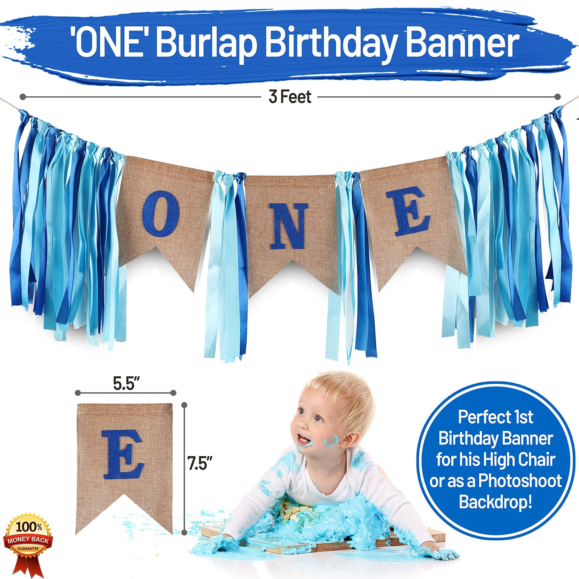 Baby Boy 1st Birthday Decorations With Birthday Crown - First Birthday Boy Decorations - Cake Smash Party Supplies - Happy Birth