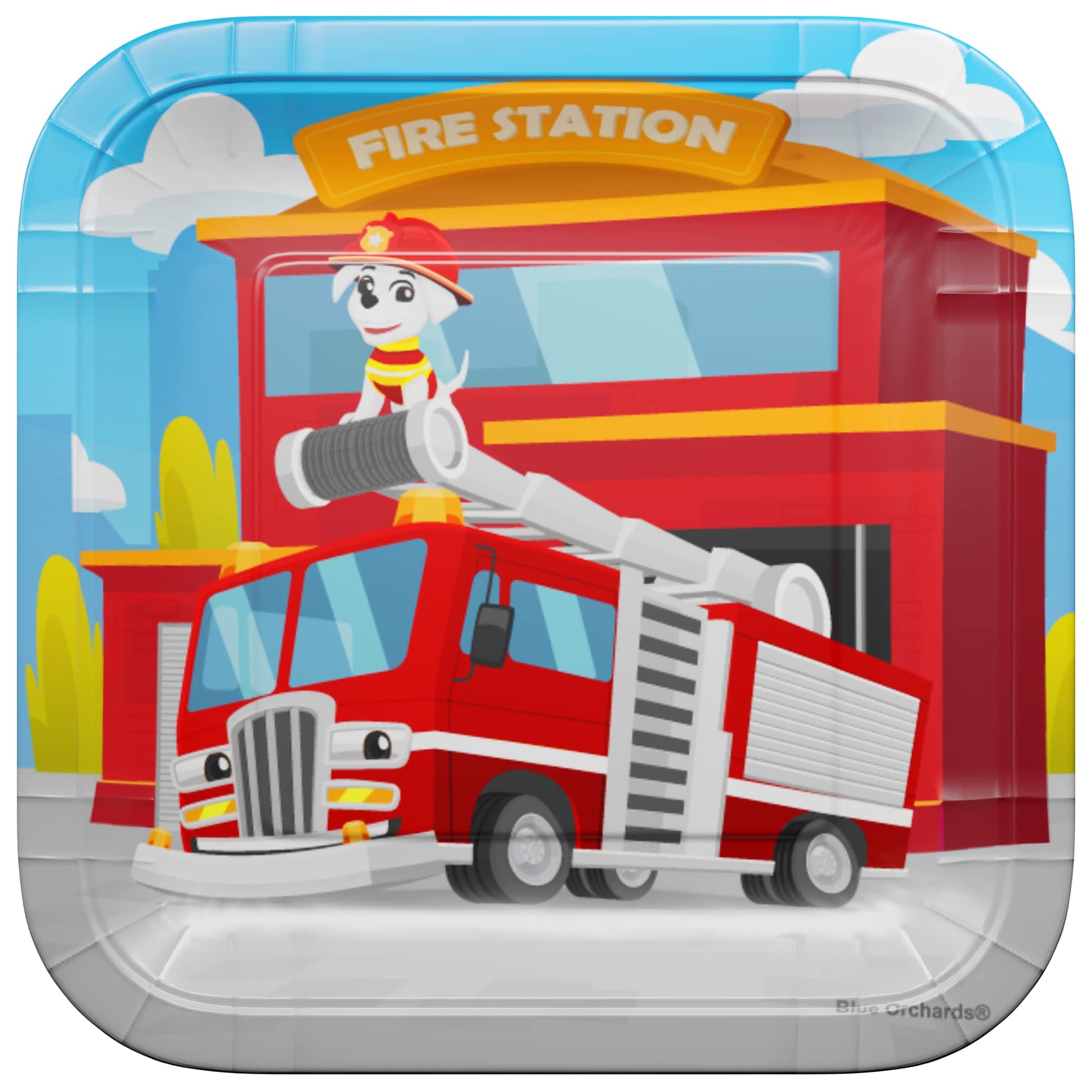 Blue Orchards Firefighter Value Party Supplies (64 Pieces For 20 Guests) - Fireman Party Plates And Napkin, Fire Truck Birthday, Boy Birthday Party Decorations, Firefighter Theme Party