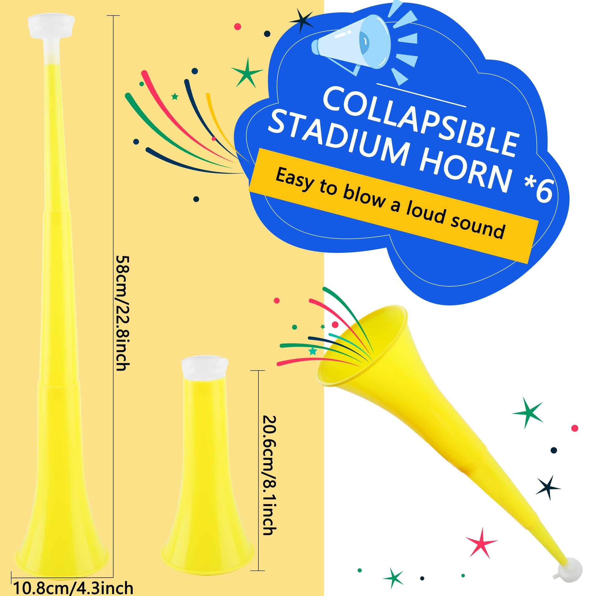 - Q: How many stadium horns are included in the package? A: The package includes 6 pieces of collapsible stadium horns, providing enough quantity for various celebration needs or group events.