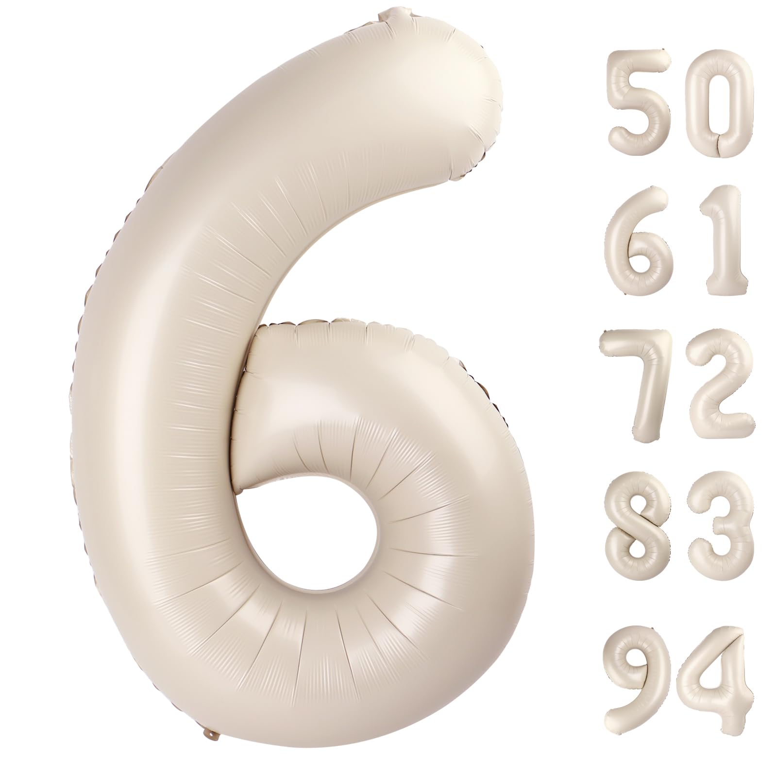 Cream White 6 Balloon, Number Balloons 40 Inch , 6Th Balloons For Birthday Decorations, Cream White Party Supplies 6 Birthday Balloon, Number 6 Balloon