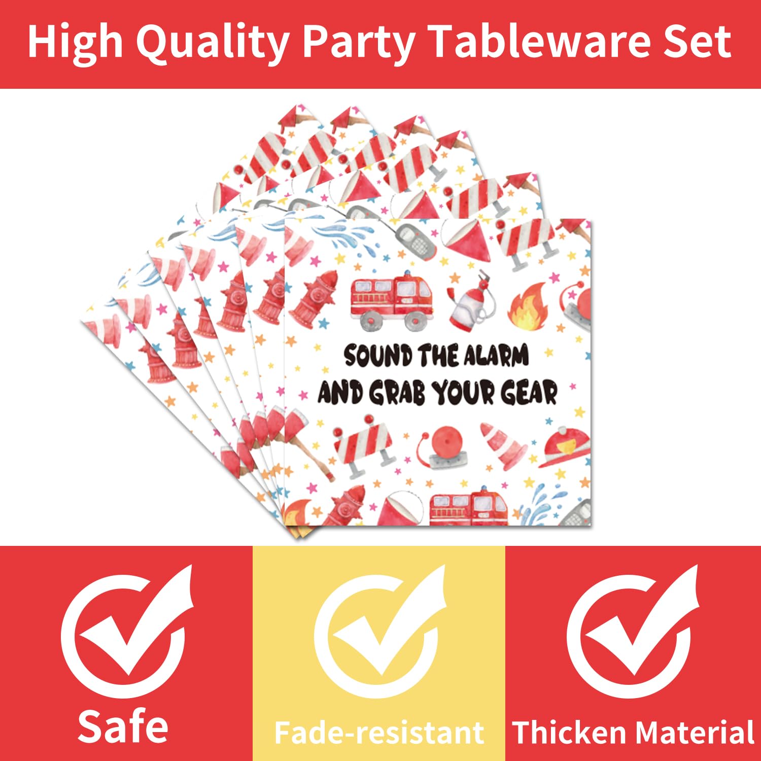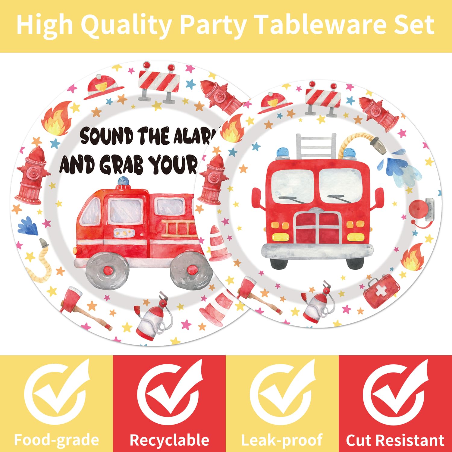 EUOYUFO Firetruck Birthday Party Decorations - 96PCS Fire Truck Plates and Napkins Party Supplies Firefighter Birthday Decoratio