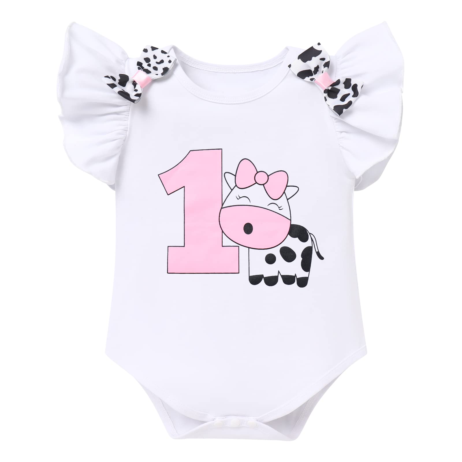 Farm Animals 1St Birthday Outfit Girls Baby Cake Smash Romper Tutu Skirt Headband First Cow Theme Farm Birthday Party Supplies Decorations Photo Shoot My 1St Rodeo Birthday Western Cowgirl White 1T