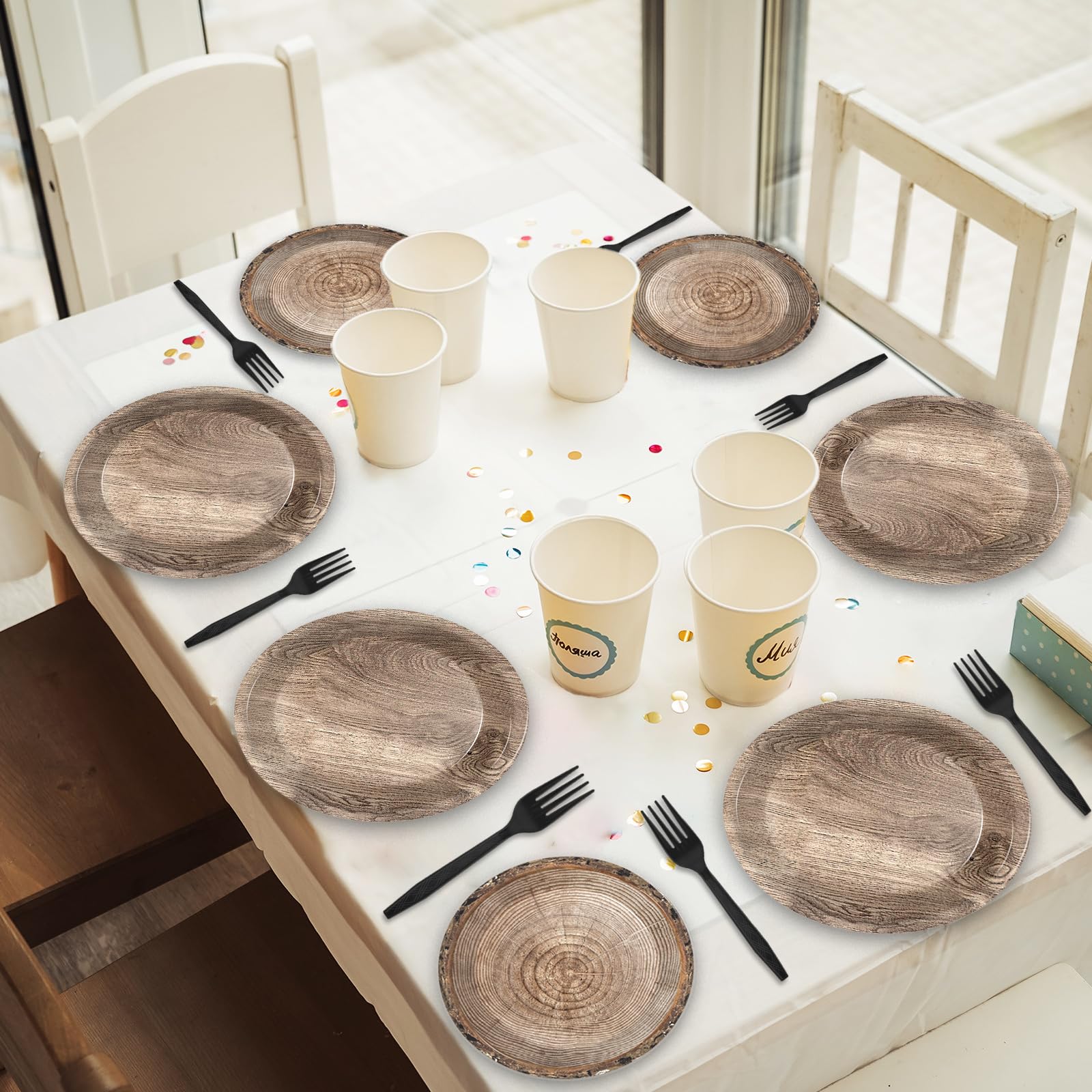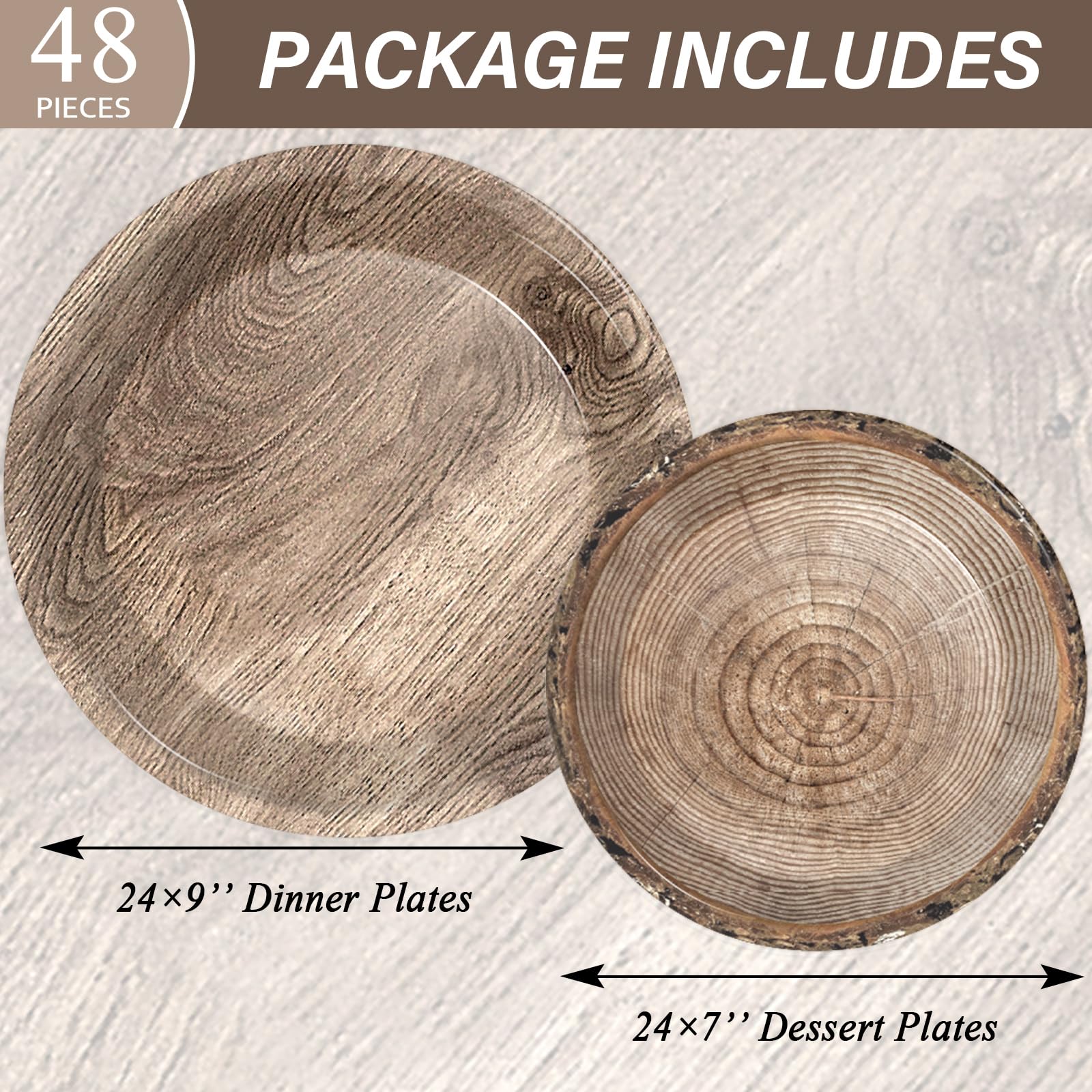 Gisgfim 48 Pcs Rustic Wooden Tree Party Plates Supplies Tableware Set Lumberjack Party Decorations Camping Hunting Theme Party T