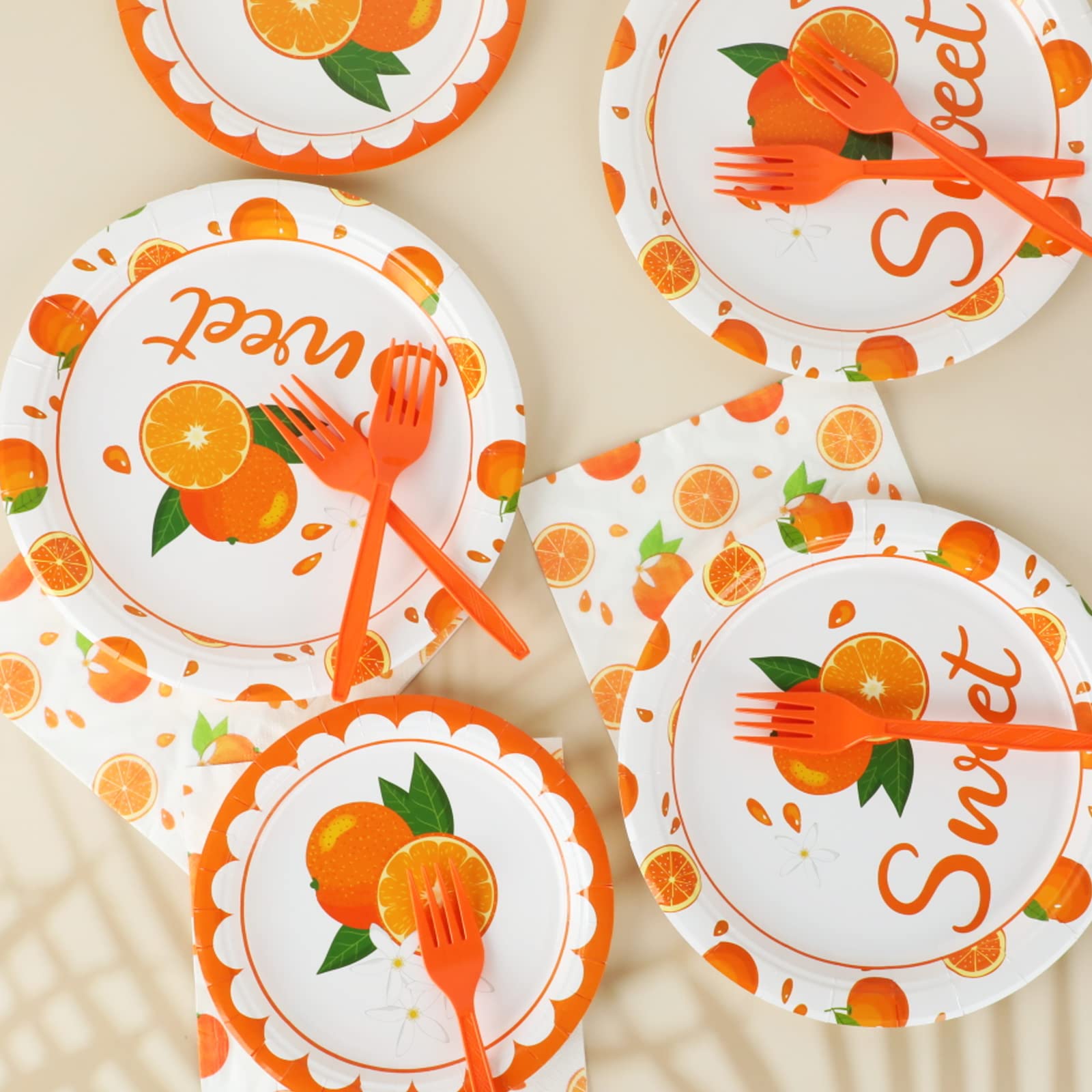 - Q: Can I use this tableware set for a baby shower? A: Absolutely! This Little Cutie Party Tableware Set is designed with a vibrant fruit orange theme, making it ideal for baby showers, birthday parties, and other summer-themed celebrations.