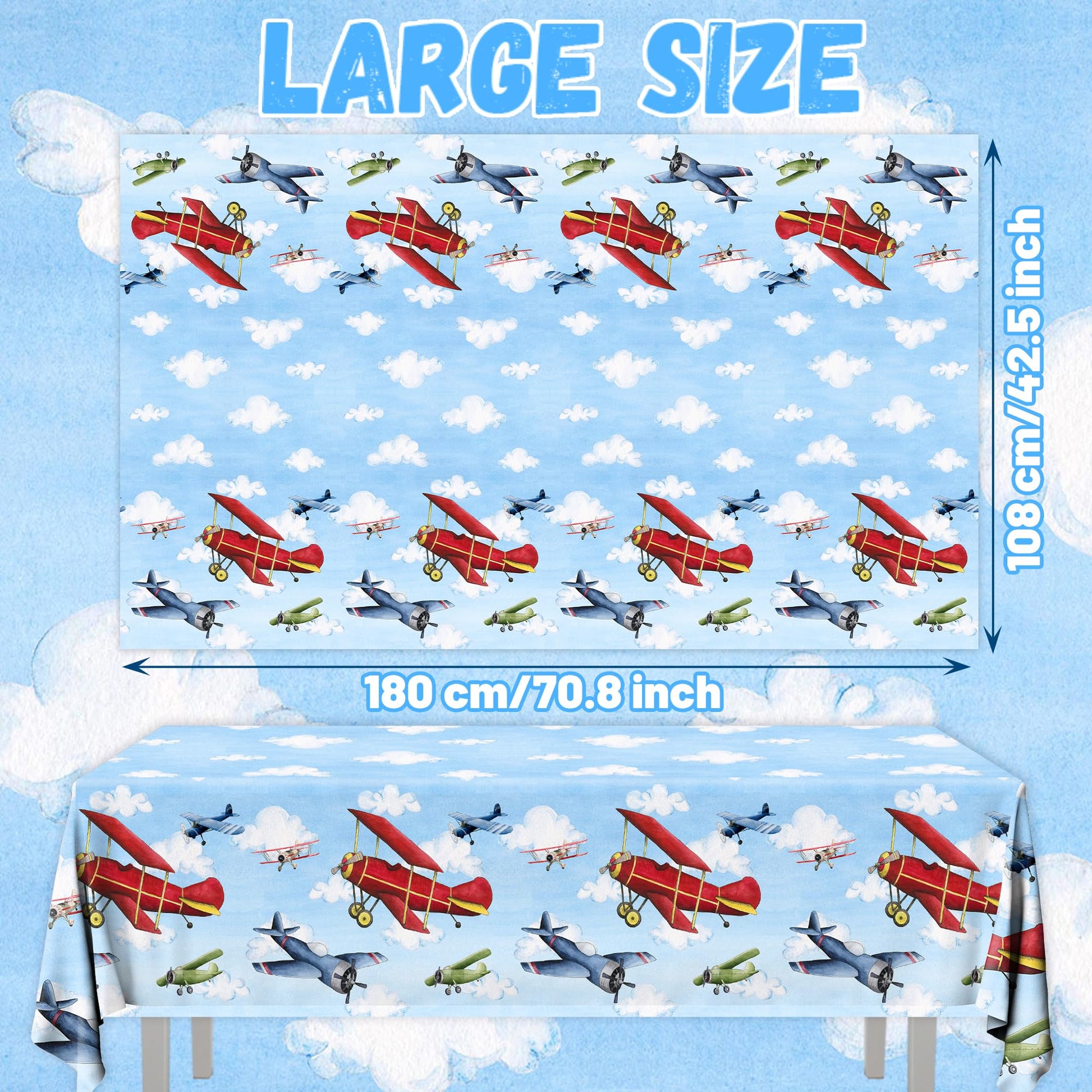 - Q: What themes or occasions are these airplane tablecloths suitable for? A: These airplane-themed tablecloths are ideal for various occasions, including children's birthday parties, baby showers, and any special event that embraces an aviation theme.