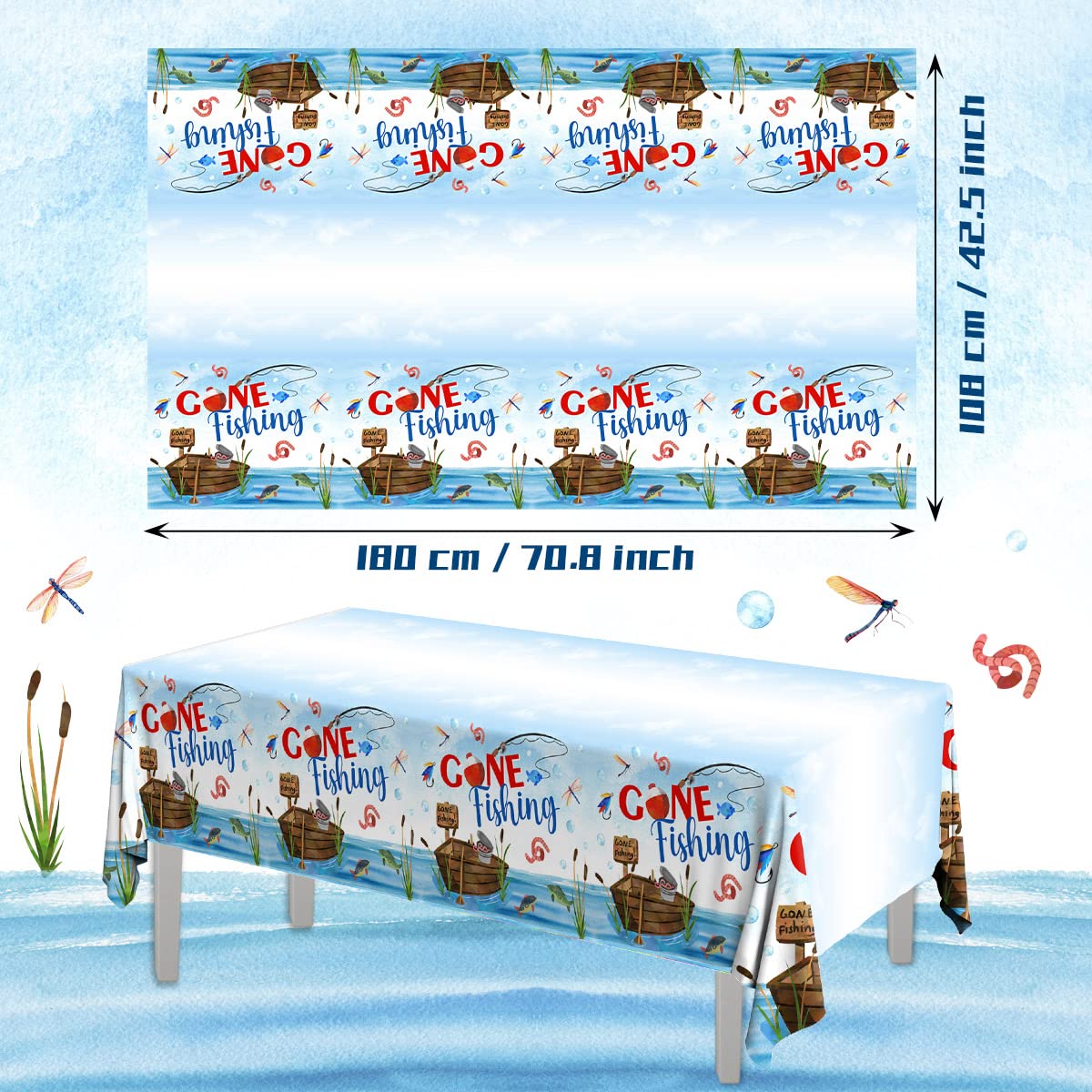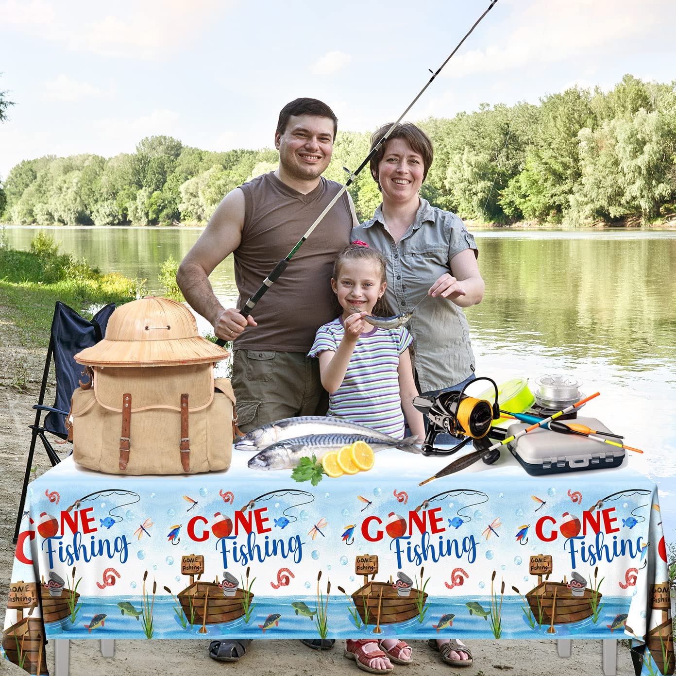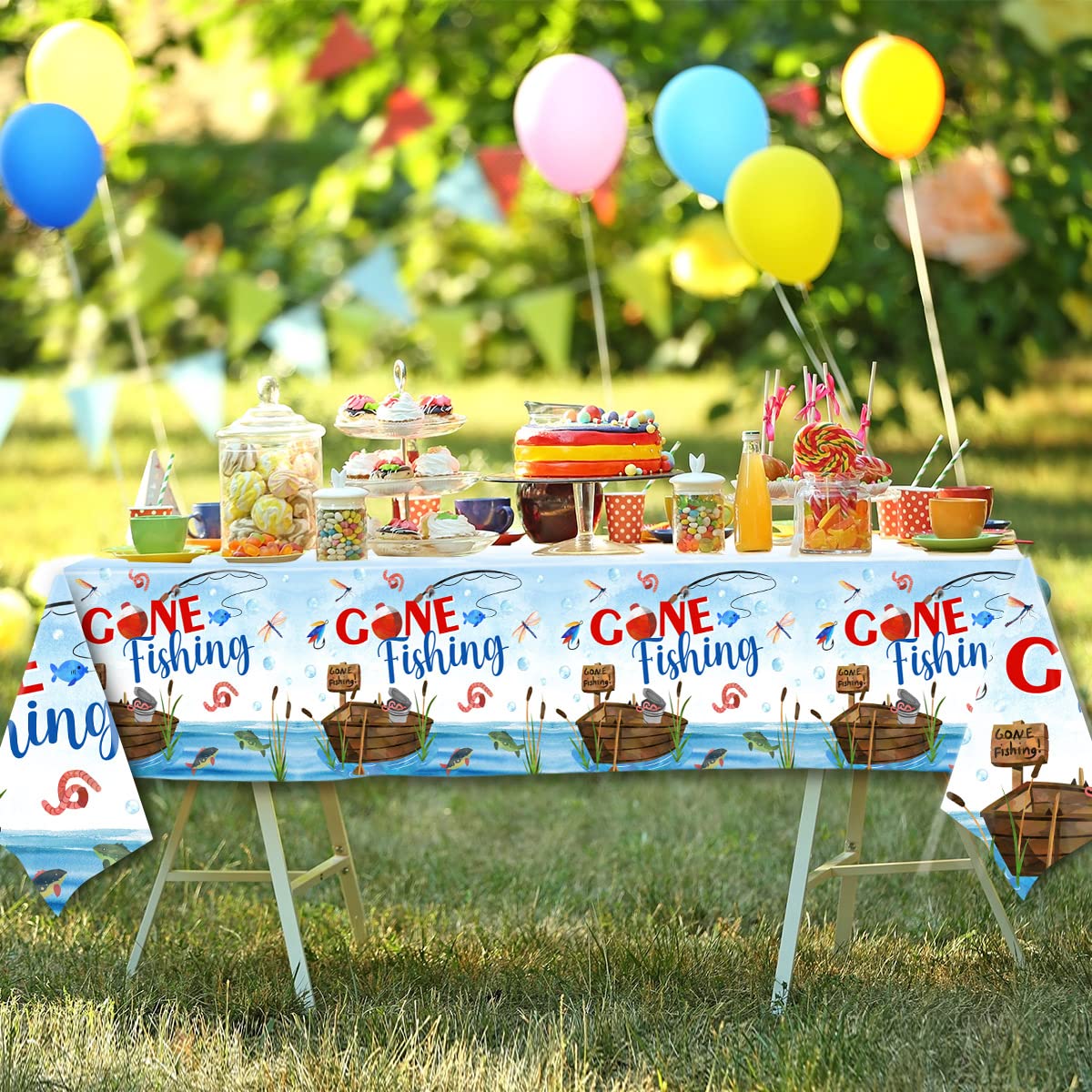 Grehumor 3Pcs Gone Fishing Tablecloth For Fishing Party Supplies Decoration Little Fisherman Themed Table Cover Plastic Disposab