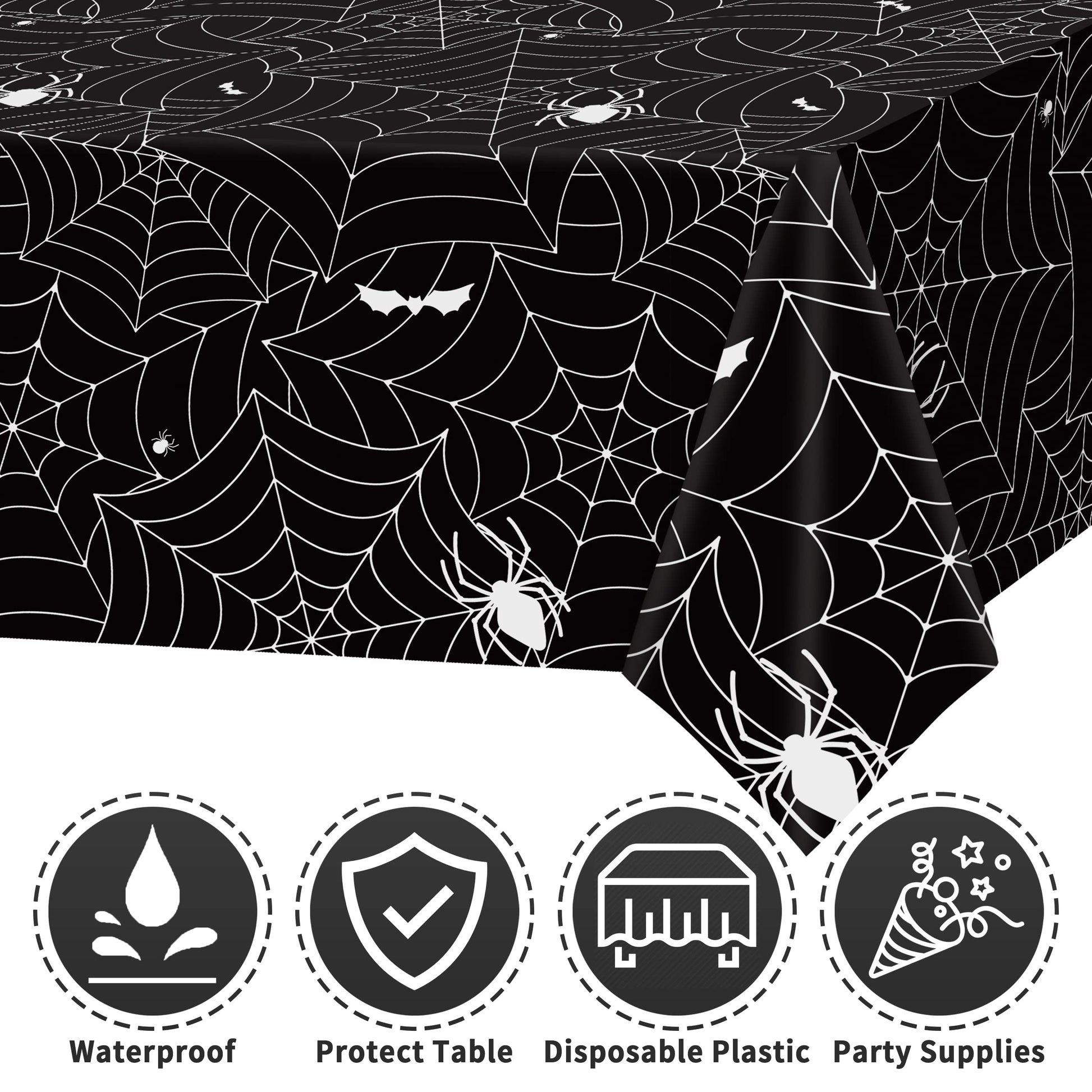 Halloween Tablecloth 3Pcs Black Spider Web Tablecloth Halloween Party Decorations Supplies Rectangular Spider Cobweb Plastic Table Cover For Halloween Baby Shower, Birthday Decorations - 54' X 108'