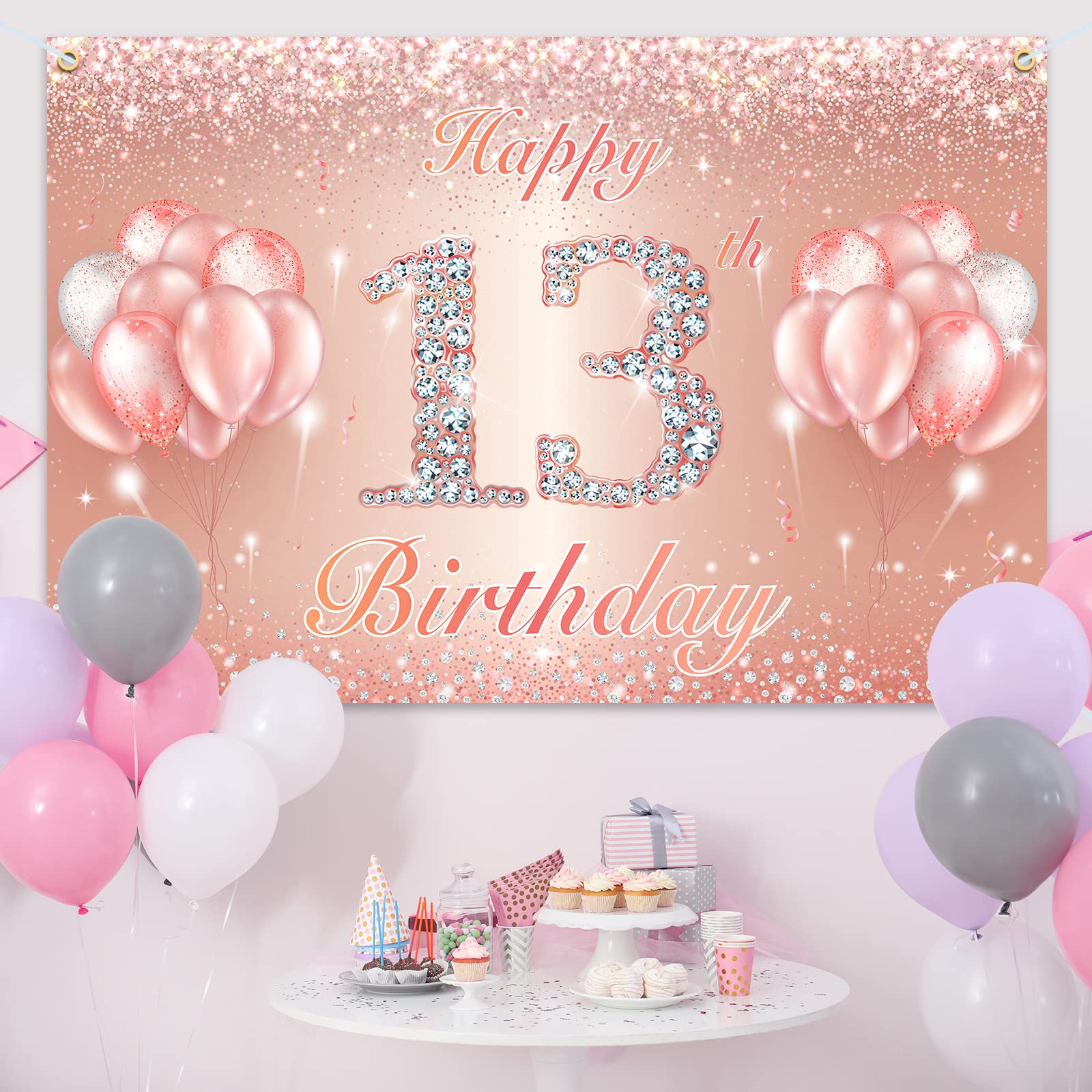 View compareHappy 13Th Birthday Banner Backdrop - 13 Birthday Party Decorations Supplies For Girls Or Boys - Rose Gold 4 X 9Ft