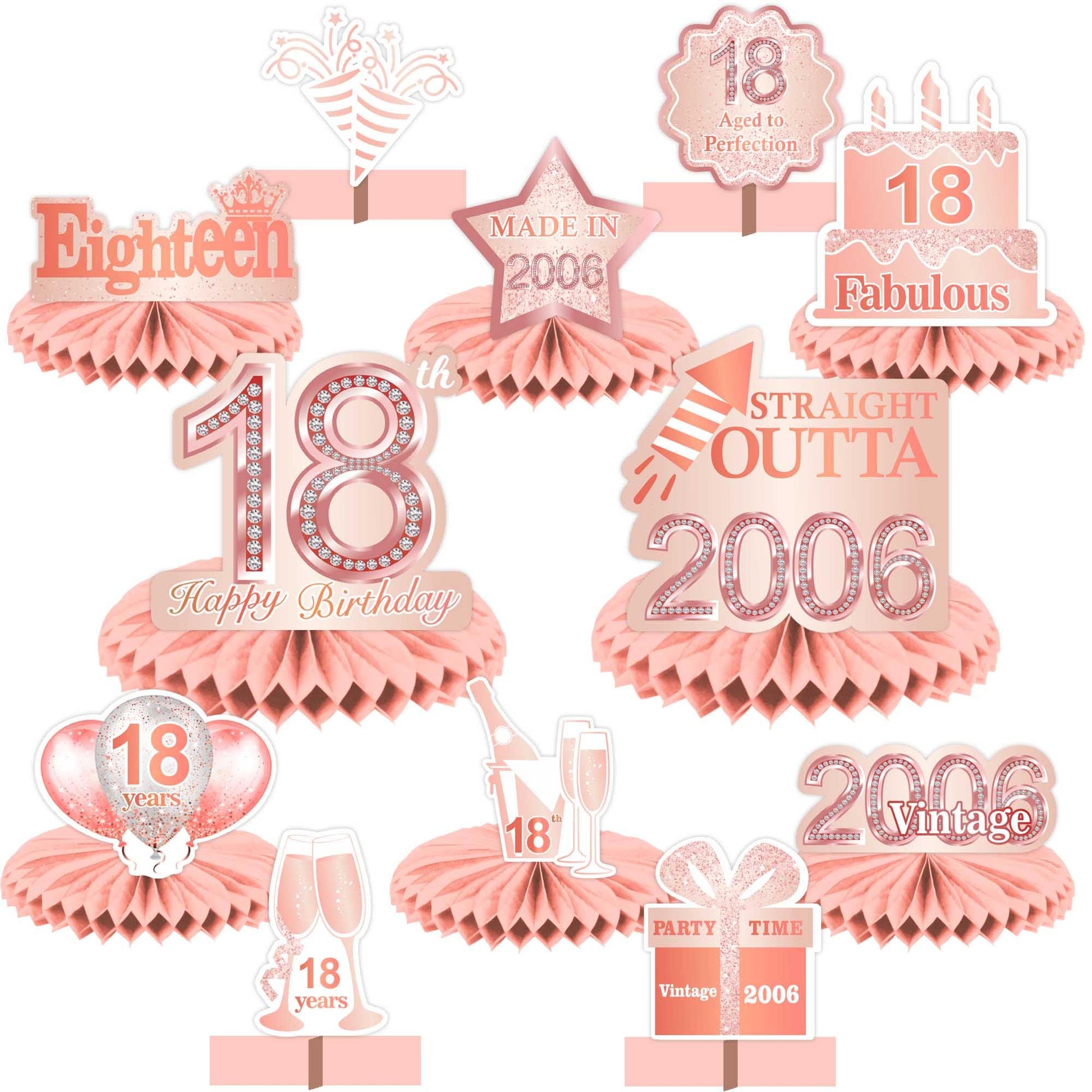View compareHappy 18Th Birthday Rose Gold Table Honeycomb Centerpieces Balloons Theme Decor Table Decorations Table Toppers For Girls Women Sweet Princess 18 Years Old Pink Birthday Party Bday Supplies Ornament