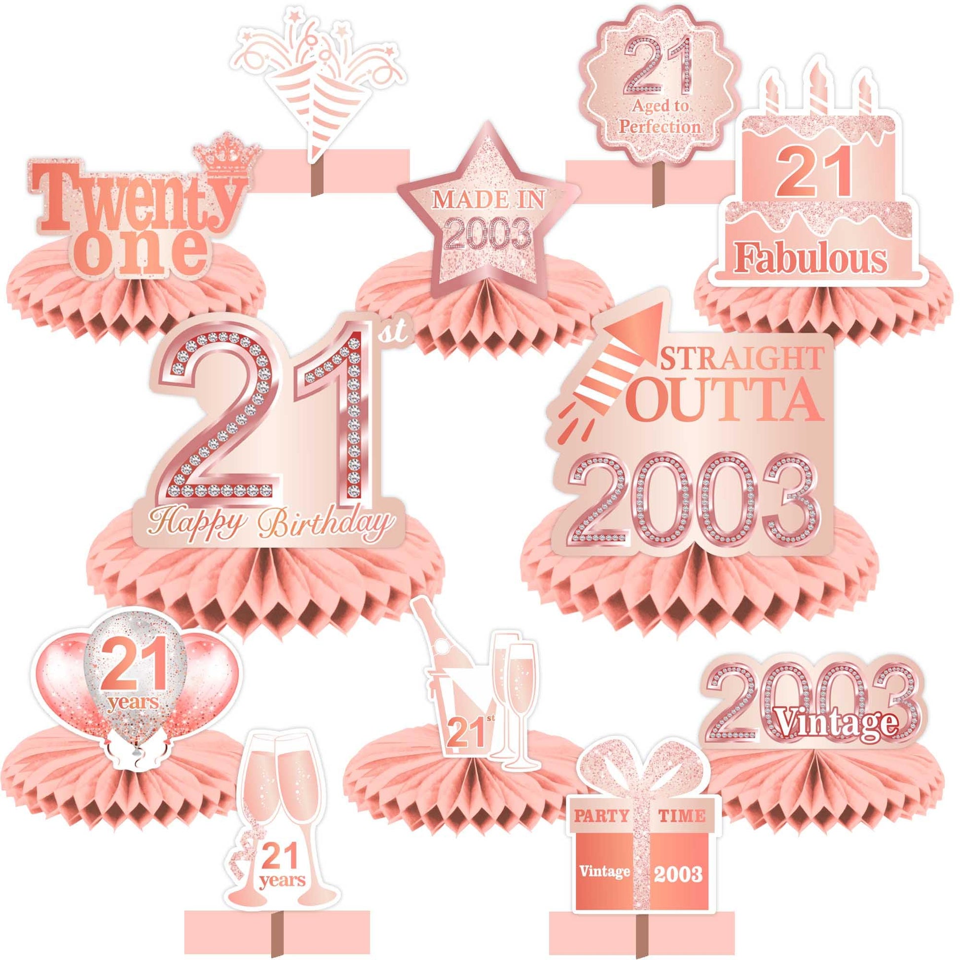 View compareHappy 21St Birthday Rose Gold Table Honeycomb Centerpieces Balloons Theme Decor Table Decorations Table Toppers For Girls Women Sweet Princess 21 Years Old Pink Birthday Party Bday Supplies Ornament