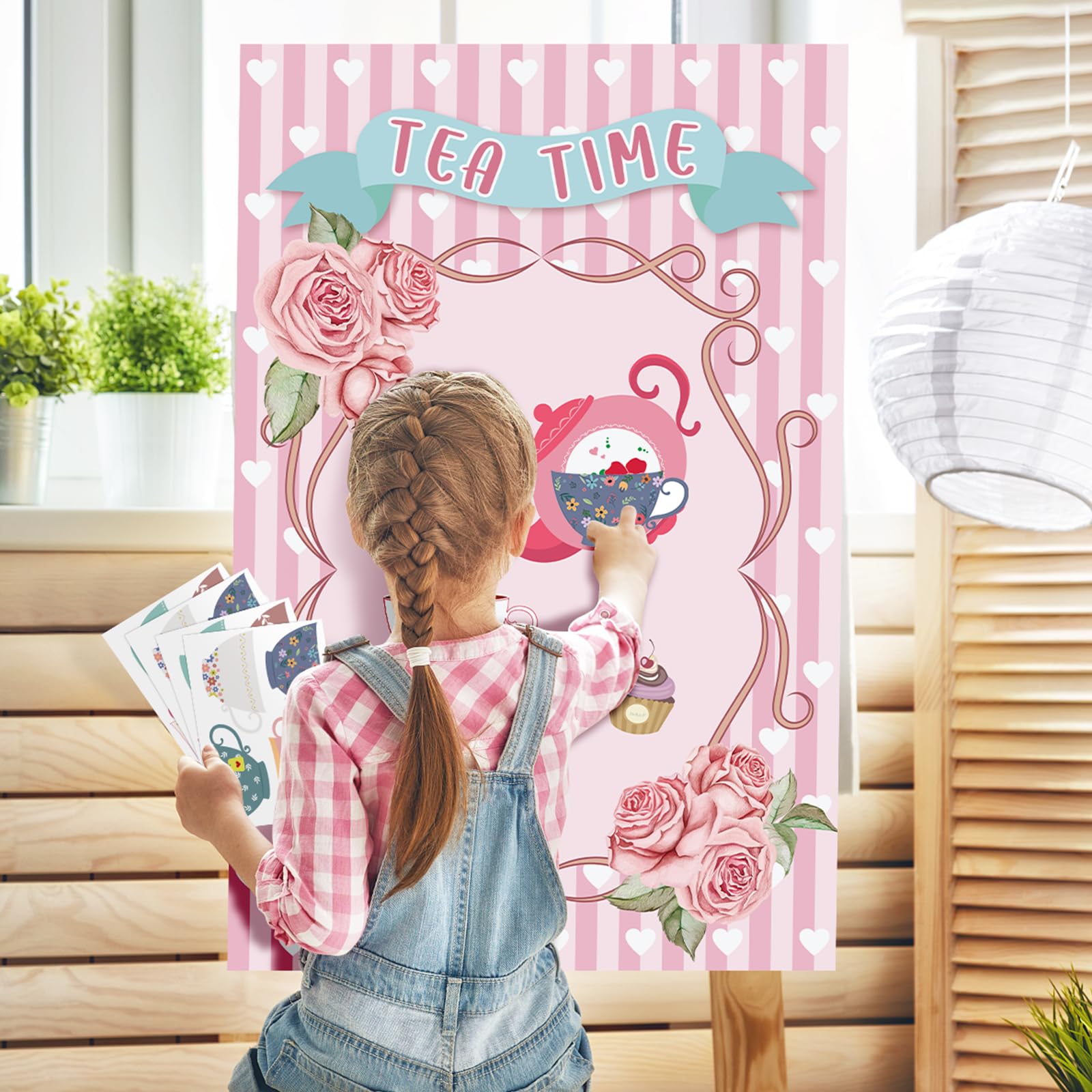 View compareHooqict Tea Party Games Pin The Tea Cup On The Saucer, Large Tea Party Decorations Poster With 24 Tea Cup Stickers For Girls Birthday Party Games Women Tea Party Favors Supplies
