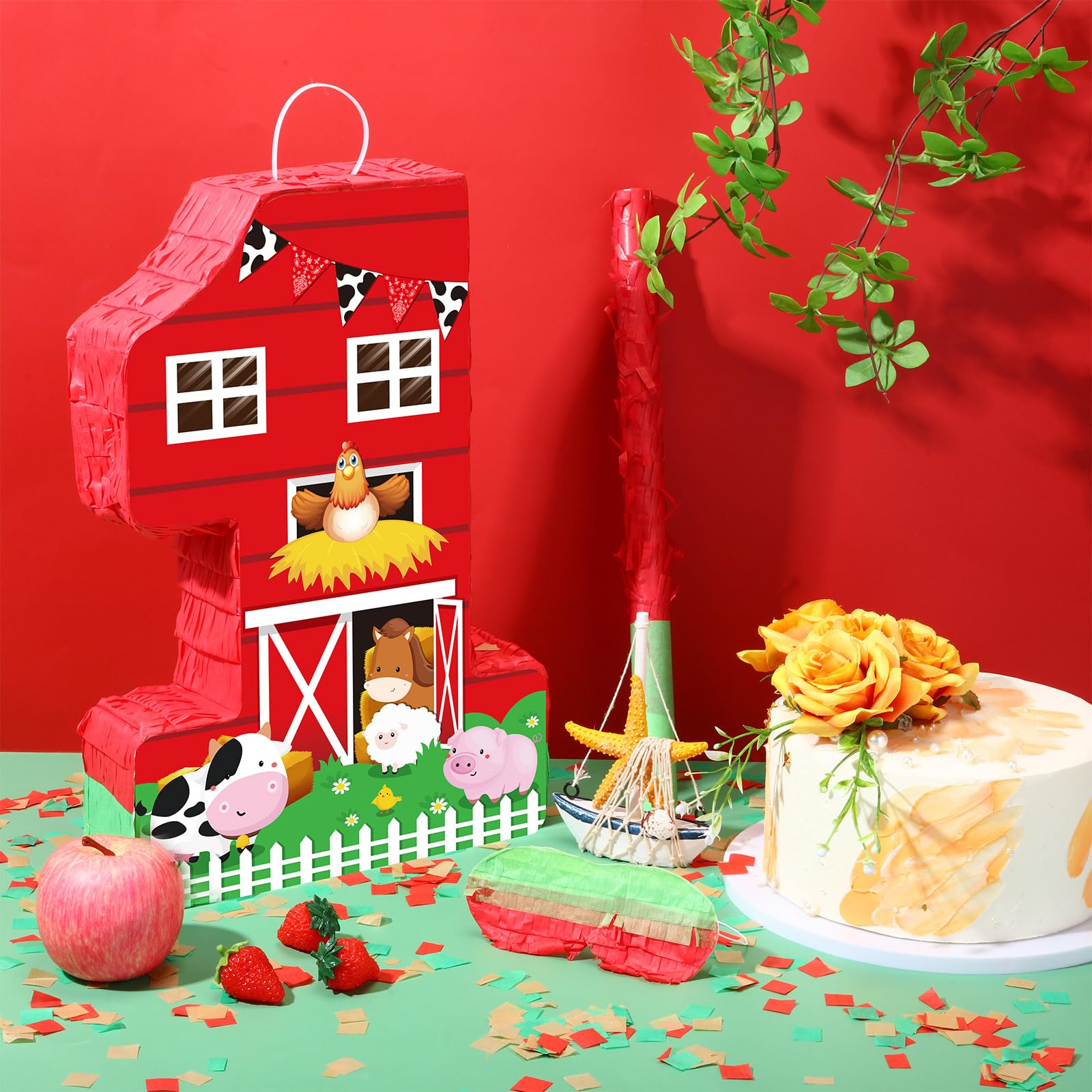 Hungdao Farm Birthday Pinata Number Pinata With Blindfold Bat And Confetti Animal Pinata For Boys Girls Birthday Party Decorations Barnyard Baby Shower Carnival Game Supplies(Farm Number 1)