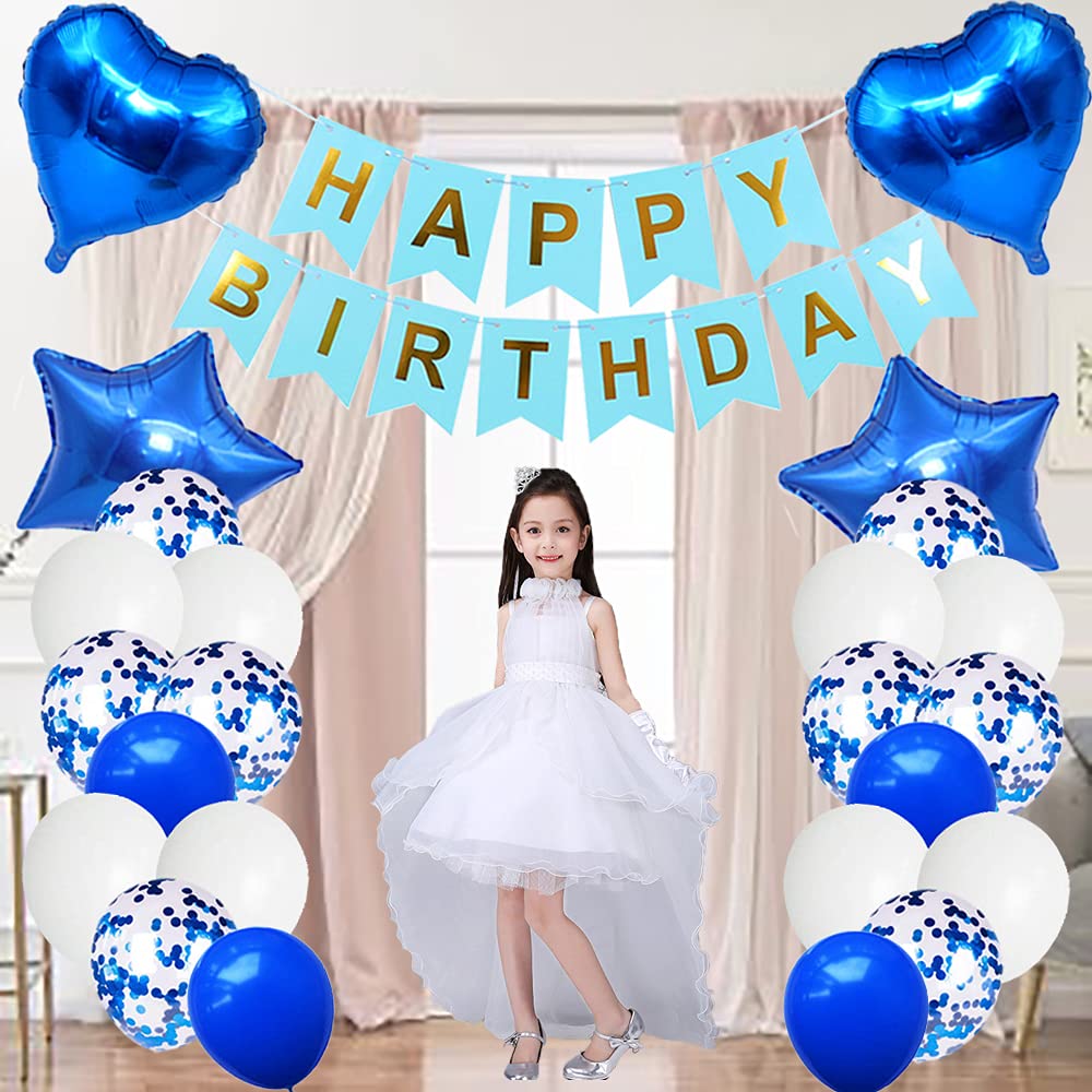 Features: Excellent Party Decor Idea Lasts Up To 72 Hours Ideal For Indoor & Outdoor Use Fillable With Helium Or Air, But Can Not Float With Air Fill Package Includes: 40 Inches Sliver Foil Balloons ''12'' Set 16 Inches ''Happy Birthday'' Banner Balloons 2Pcs 18 Inches Blue Star Balloons 6Pcs 12 Inches Blue Latex Balloon 6Pcs 12 Inches White Latex Balloon 6Pcs 12 Inches Light Blue Latex Balloon 6Pcs 12 Inches Blue Confetti Latex Balloon 10M Blue Color Ribbon (2 Rolls) 2 Sheet Balloon Dot Glue (40Pcs)