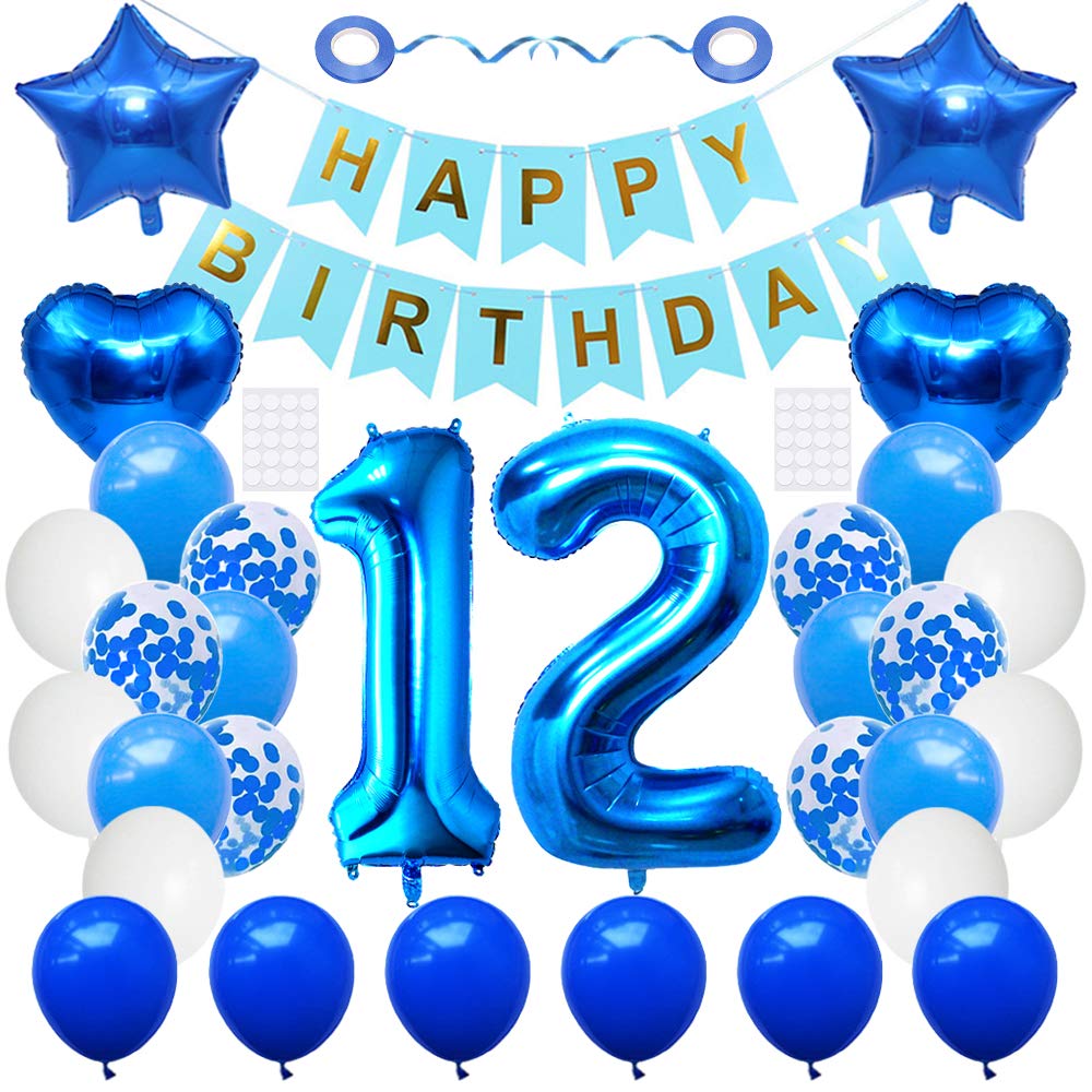View compareHuture 12 Birthday Party Supplies Blue Number 12 Foil Balloon Happy Birthday Banner Kit 12Th Birthday Decoration White Blue Late