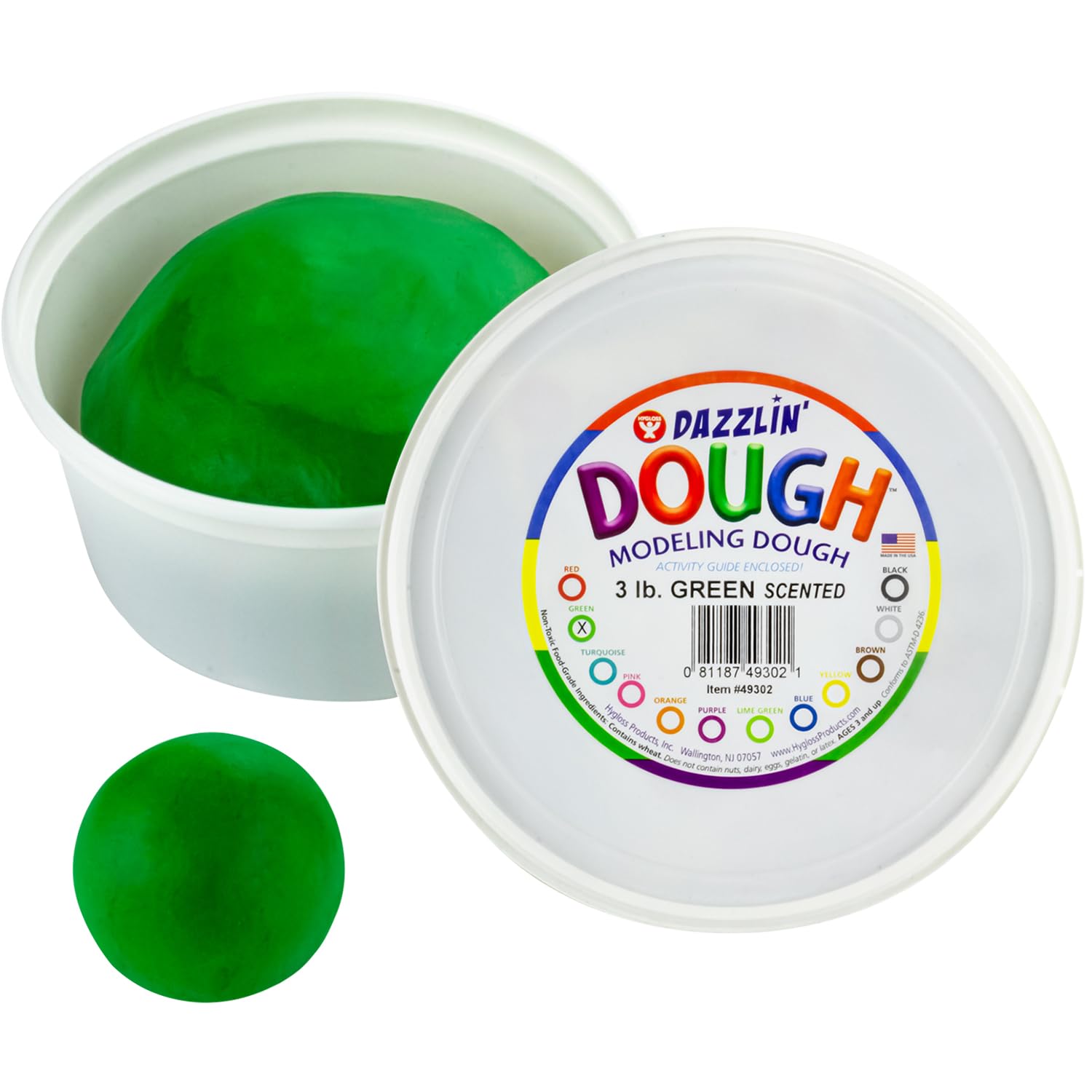 SUPERIOR CHRISTMAS MODELING DOUGH: The Scented Dazzlin Dough comes in a variety of snazzy colors. Three pounds of modeling dough comes packed in a resealable container for quick clean-up and long-lasting use! | ALL-NATURAL INGREDIENTS: This art dough is non-toxic and made of natural food-grade ingredients. It contains no nuts, dairy, eggs, gelatin, latex or corn. It does contain wheat | IMPROVE FINE MOTOR SKILLS WITH FESTIVE FUN: Create joyful holiday memories while strengthening hand and finger muscles. Kids will love squishing, rolling, and molding this dough into Christmas trees, candy canes, and Santa hats! | TEACH COLOR MIXING: Mix primary colors to create festive combinations for holiday-themed crafts. Blend red and green for a Christmas palette or mix blue and white to create snowy designs! | MADE IN THE USA – The Hygloss Products Scented Dazzlin’ Dough is proudly made in the USA. It is suitable for ages 3 and up and conforms to ASTM-D4236.